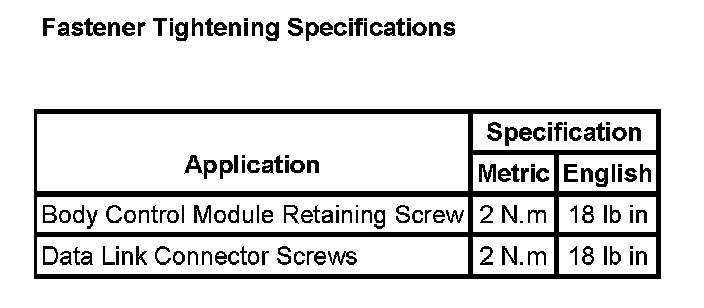 Fastener Tightening Specifications: