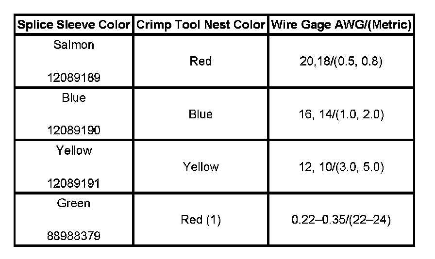 5. Select the proper duraseal splice sleeve (2) and the required crimp nest tool. Refer to the Crimp and Seal Splice Table.