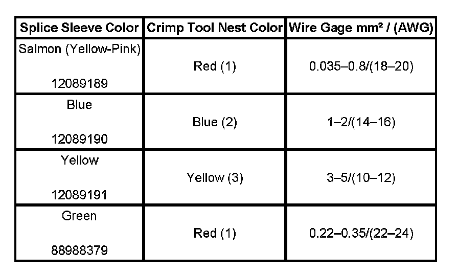 4. Select the proper DuraSeal splice sleeve according to the wire size. Refer to the above table at the beginning of the repair procedure for the color coding of the DuraSeal splice sleeves and the crimp tool nests.
