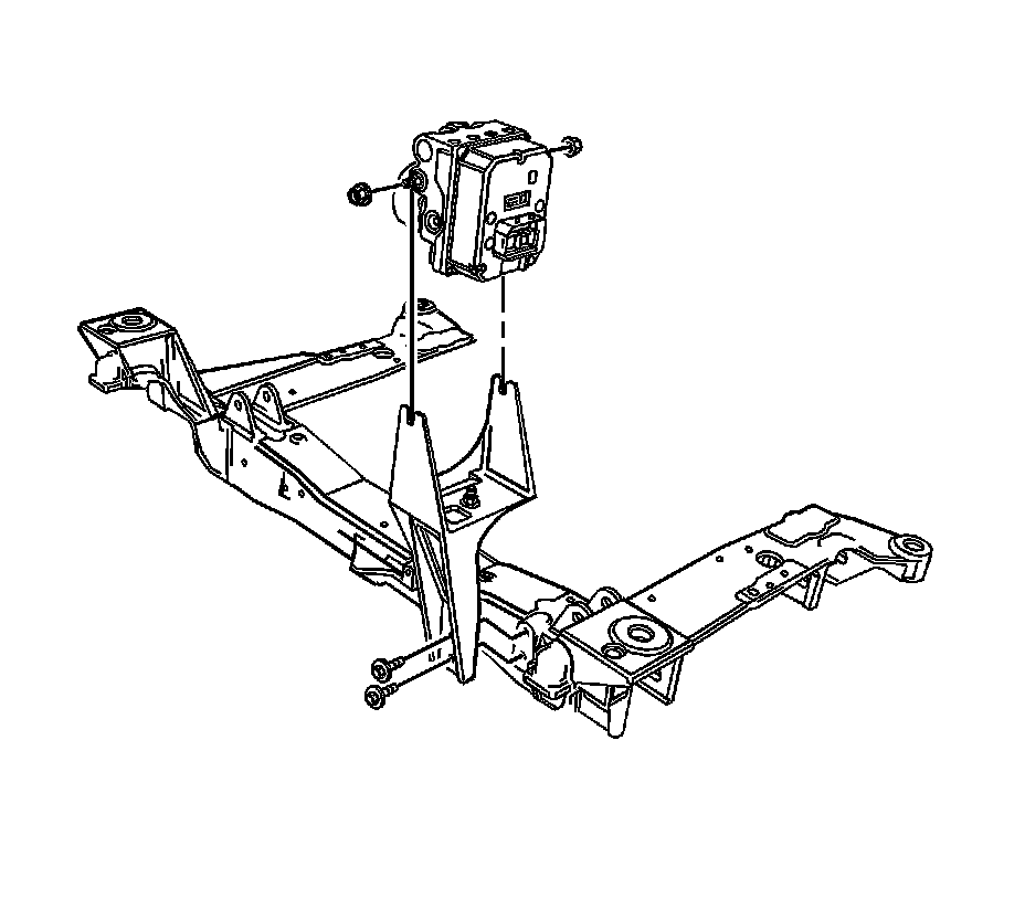 6. Remove the two BPMV bracket-to-crossmember mounting bolts to improve access to the EBCM and connector.