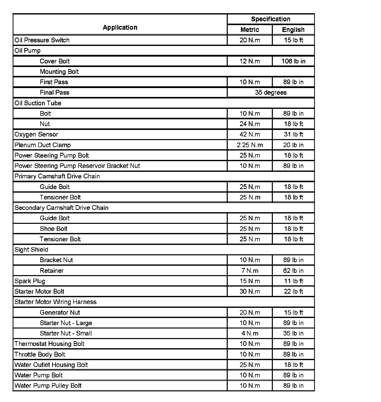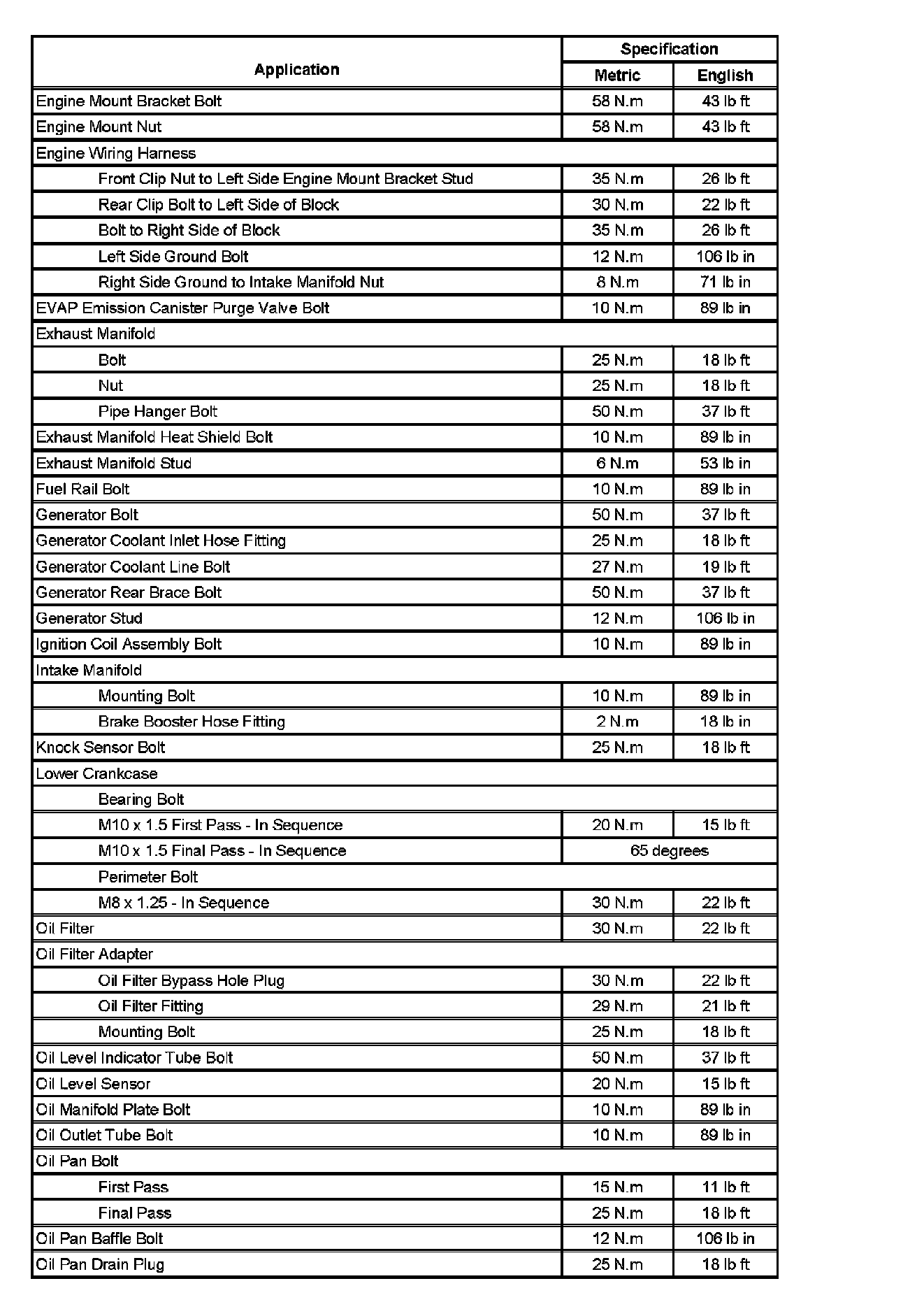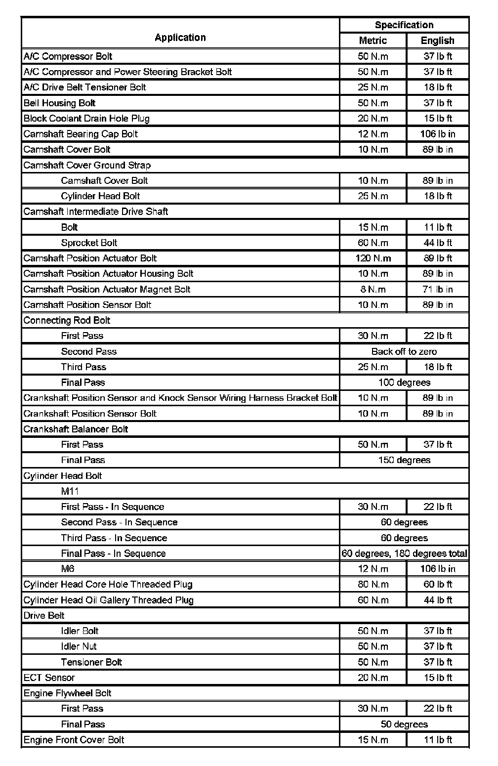 Fastener Tightening Specifications (Part 1):