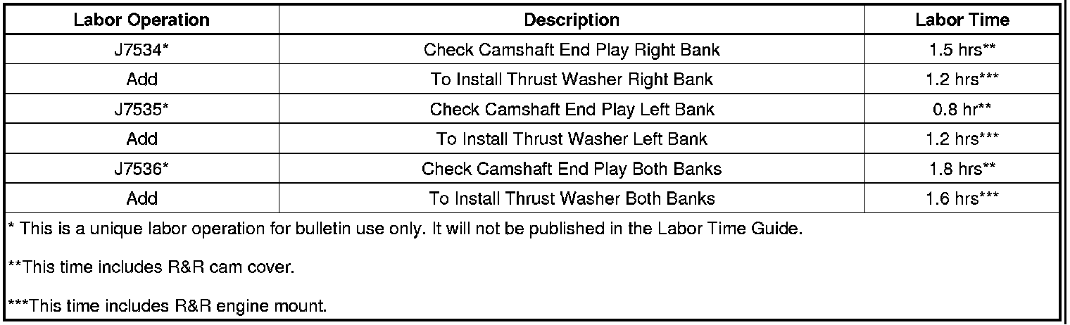 Warranty Information (Thrust Washer Installation) (Buick LaCrosse/Allure)