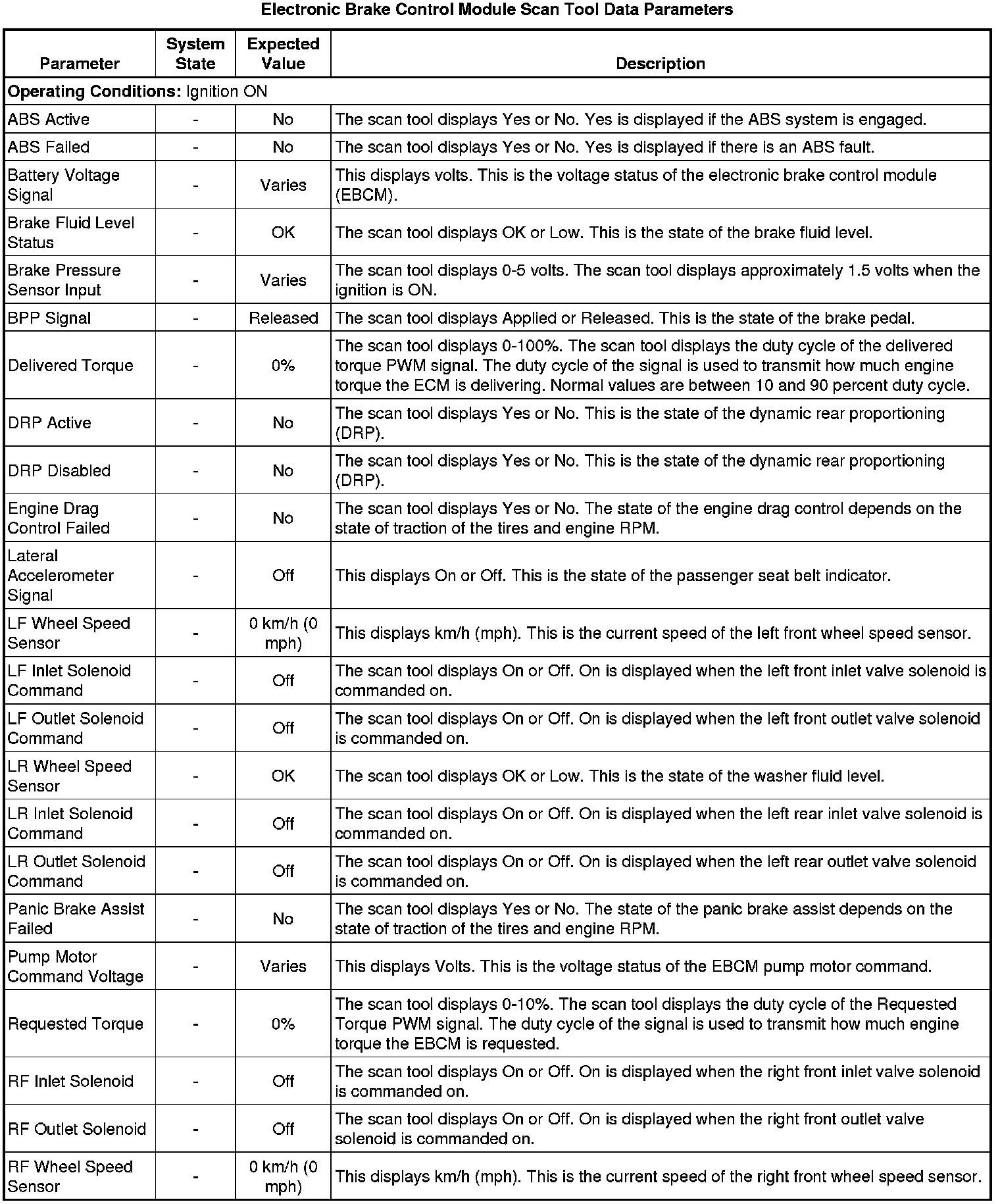 Electronic Brake Control Module Scan Tool Information