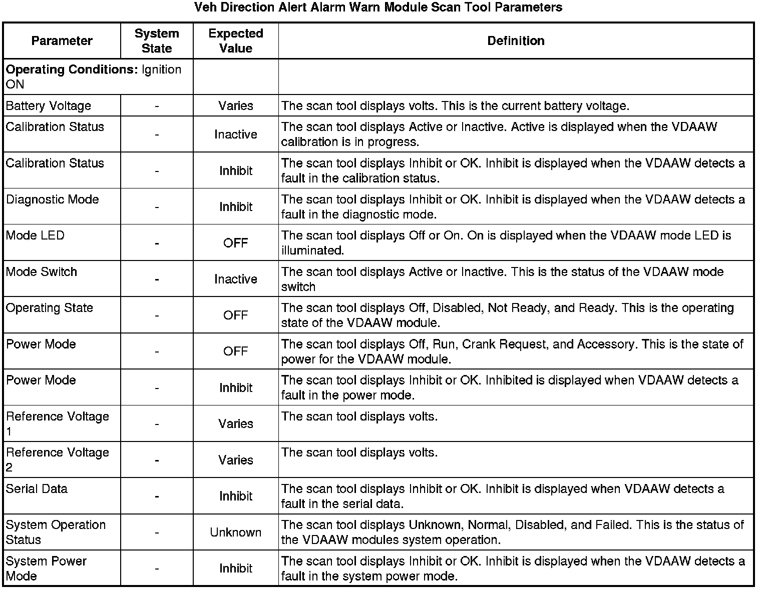 Vehicle Direction Alert Alarm Warning Module Scan Tool Information