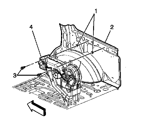 1. Install the auxiliary HVAC module assembly (4) to the vehicle.