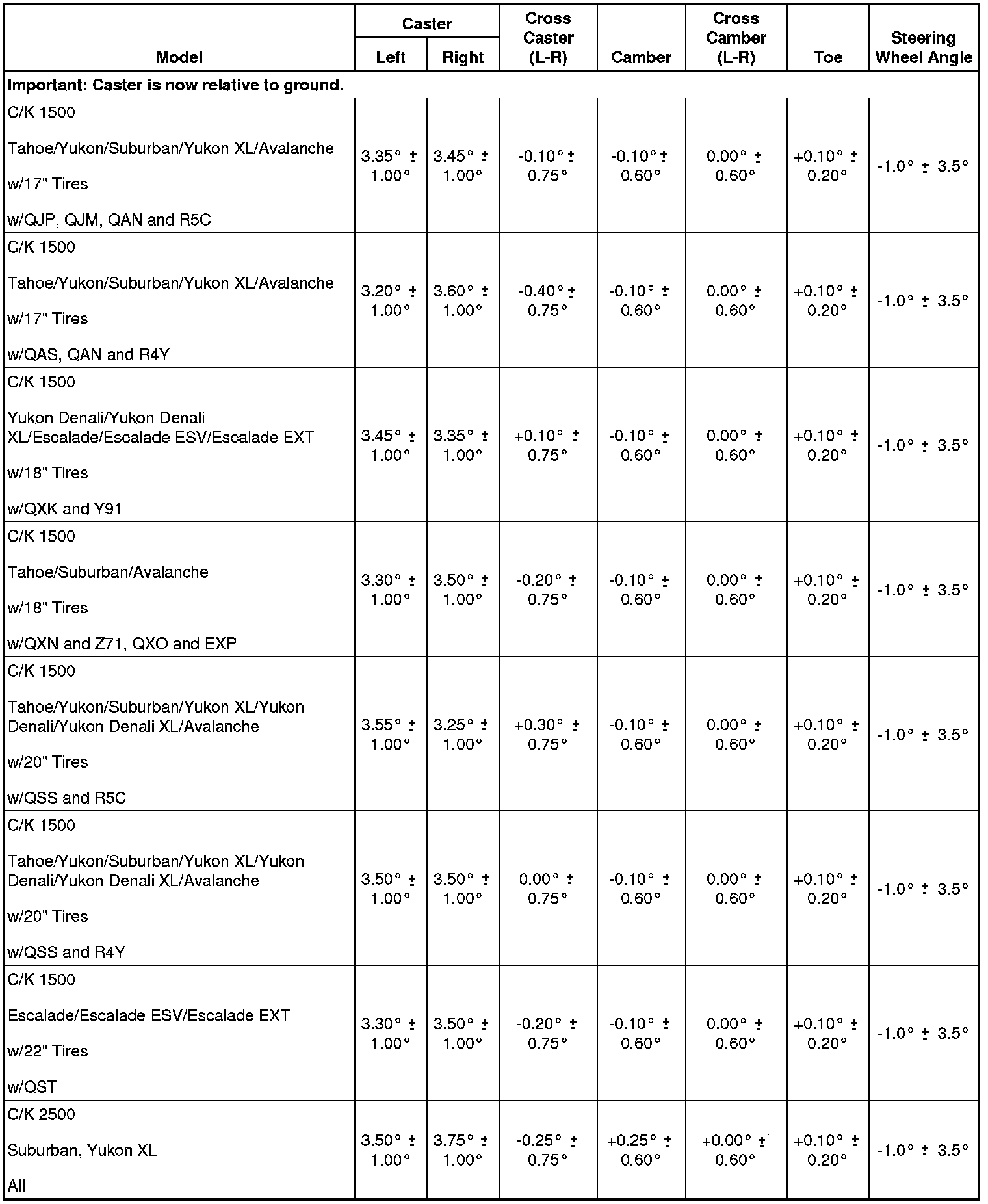 Wheel Alignment Specifications