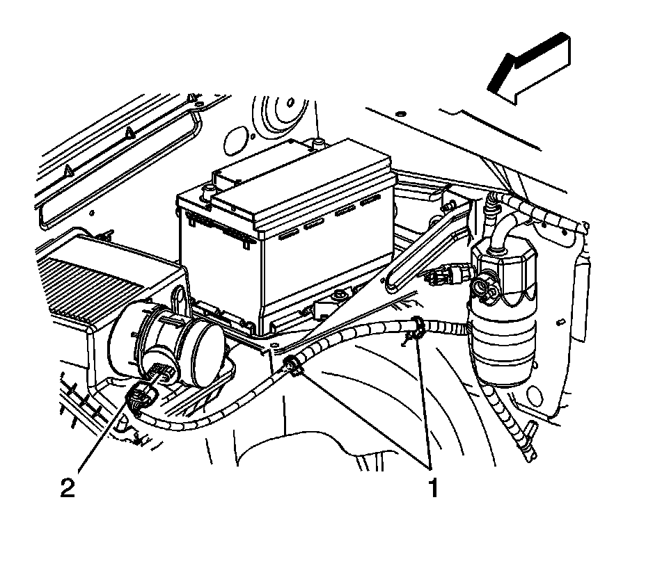 Important: The embossed arrow on the MAF/IAT sensor indicates the proper air flow direction. The arrow must point toward the engine.