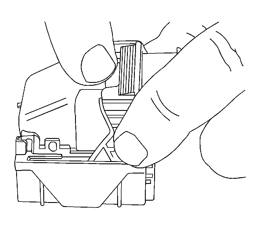 3. Locate the dress cover locking tabs at the front of the connector. Using a small flat-blade tool push down on one of the locking tabs and pull the cover up until the dress cover releases. Repeat this procedure for the other locking tab.