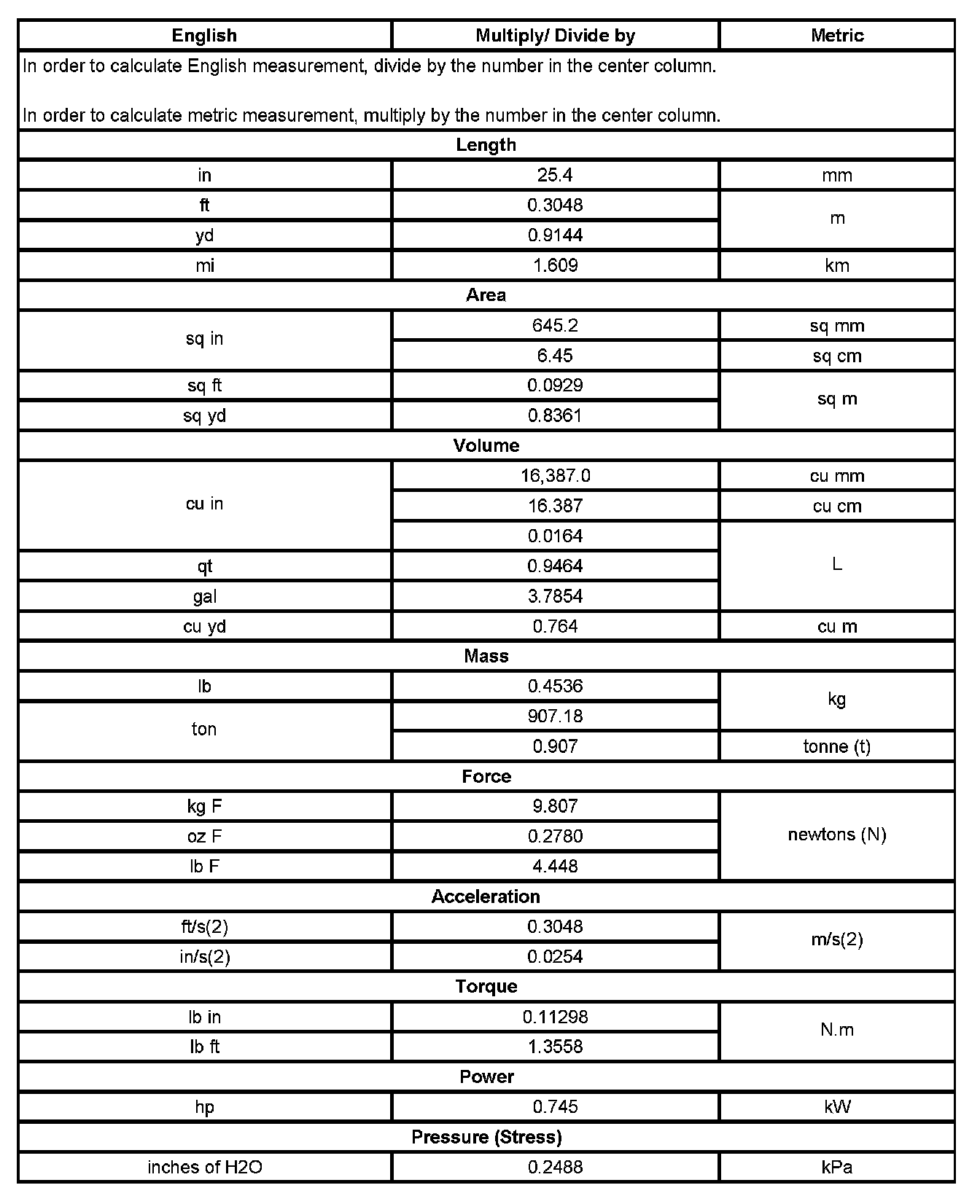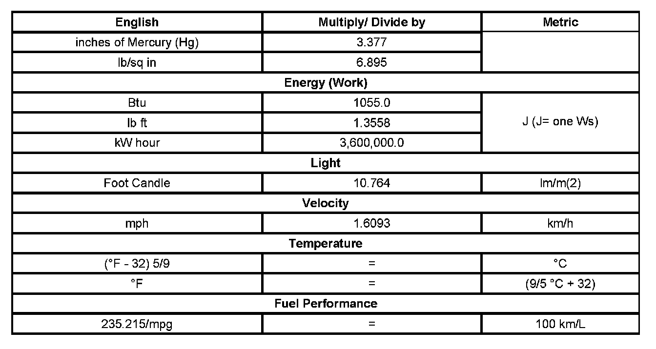 US English/Metric Conversion
