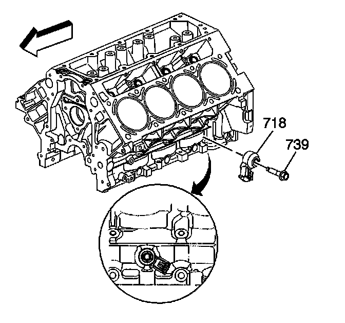 1. Position the knock sensor (718) to the engine block and install the knock sensor bolt (739).