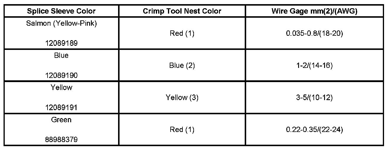 6. Select the proper DuraSeal splice sleeve according to the wire size. Refer to the above table at the beginning of the repair procedure for the color coding of the DuraSeal splice sleeves and the crimp tool nests.