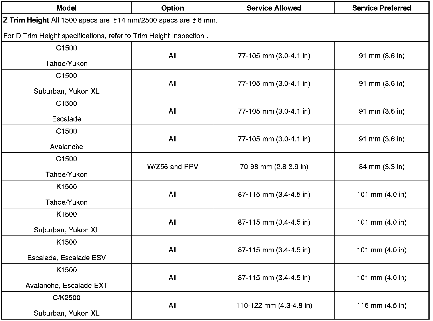Trim Height Specifications