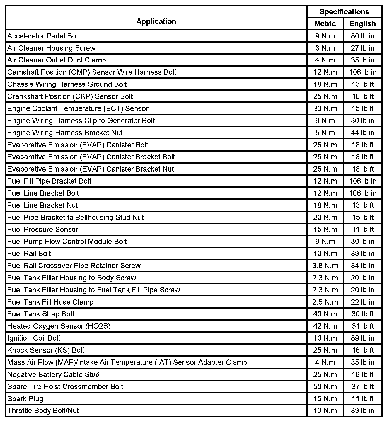 Fastener Tightening Specifications