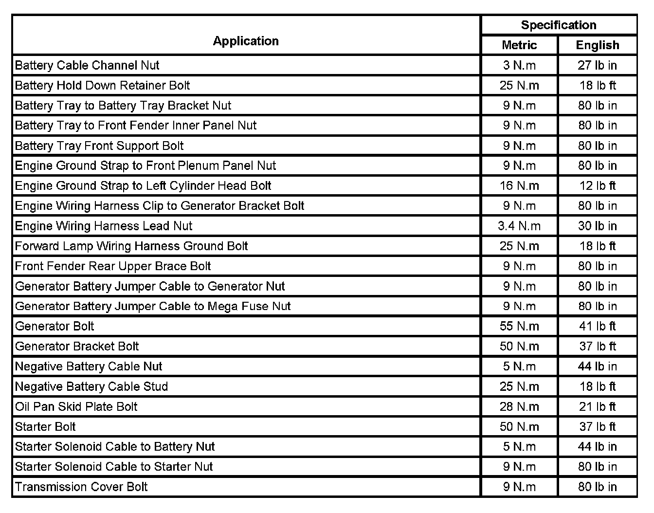 Fastener Tightening Specifications