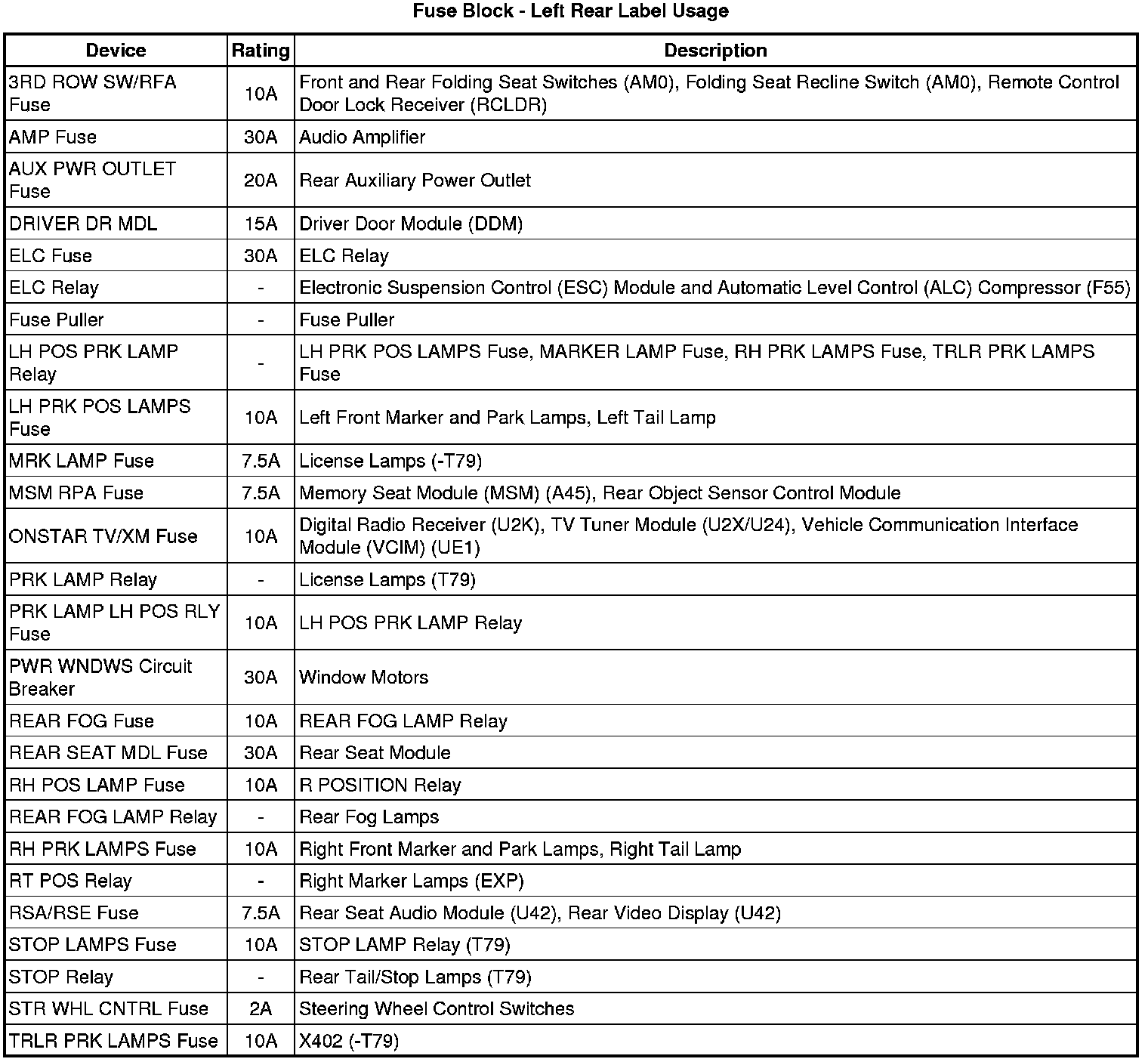 Fuse Block - Left Rear Label
