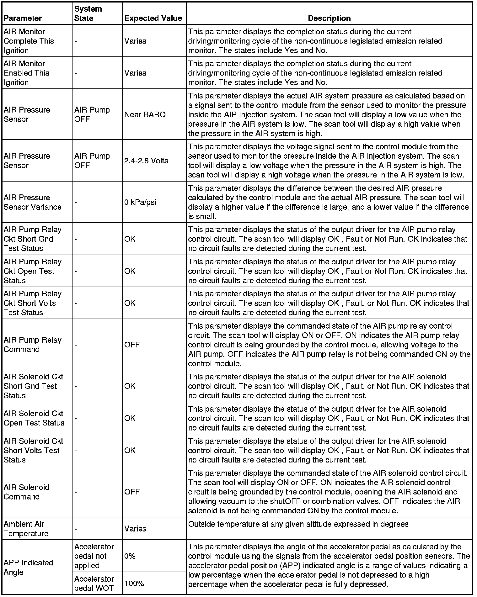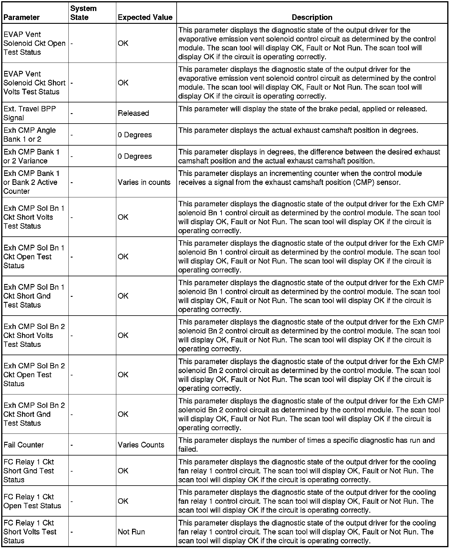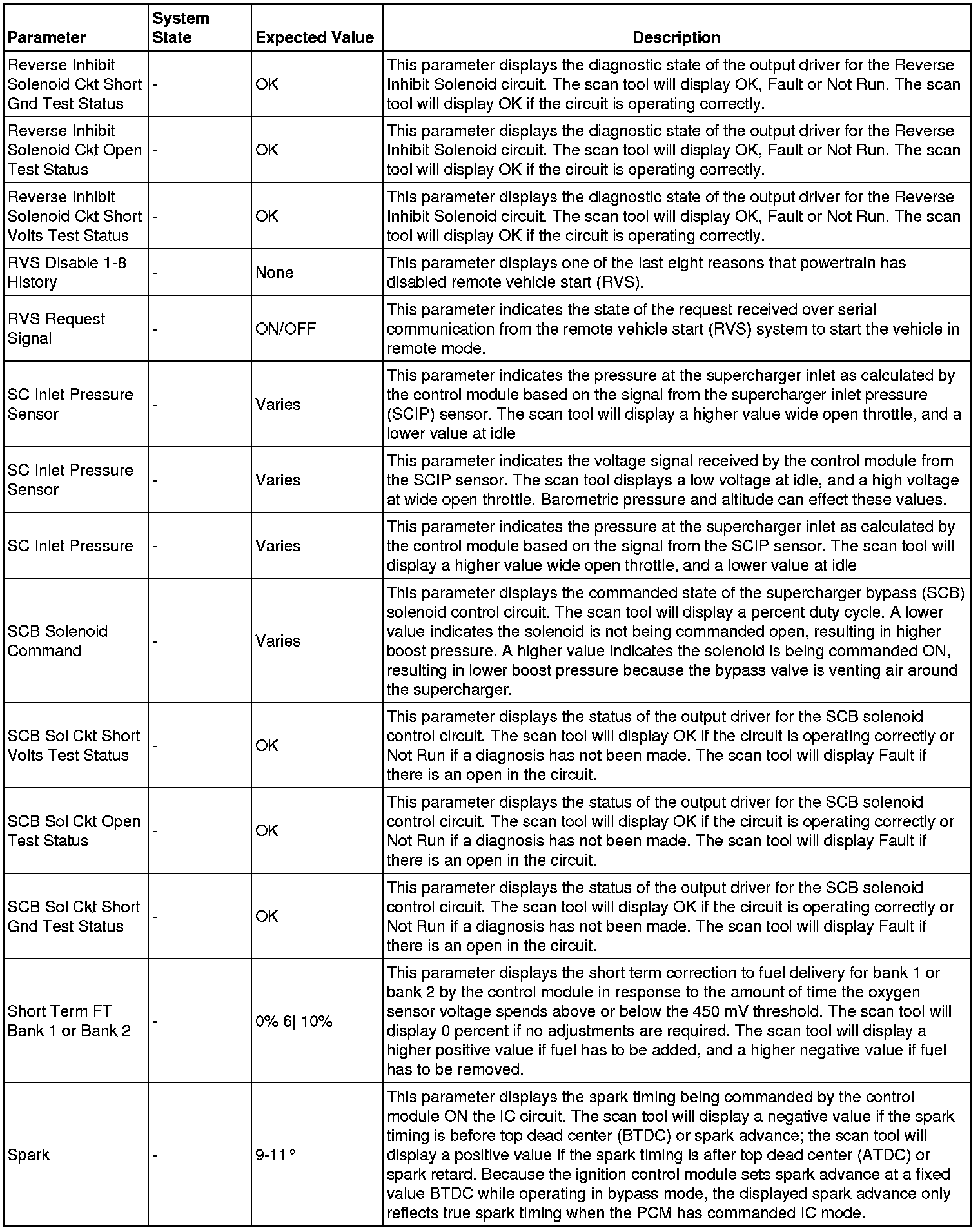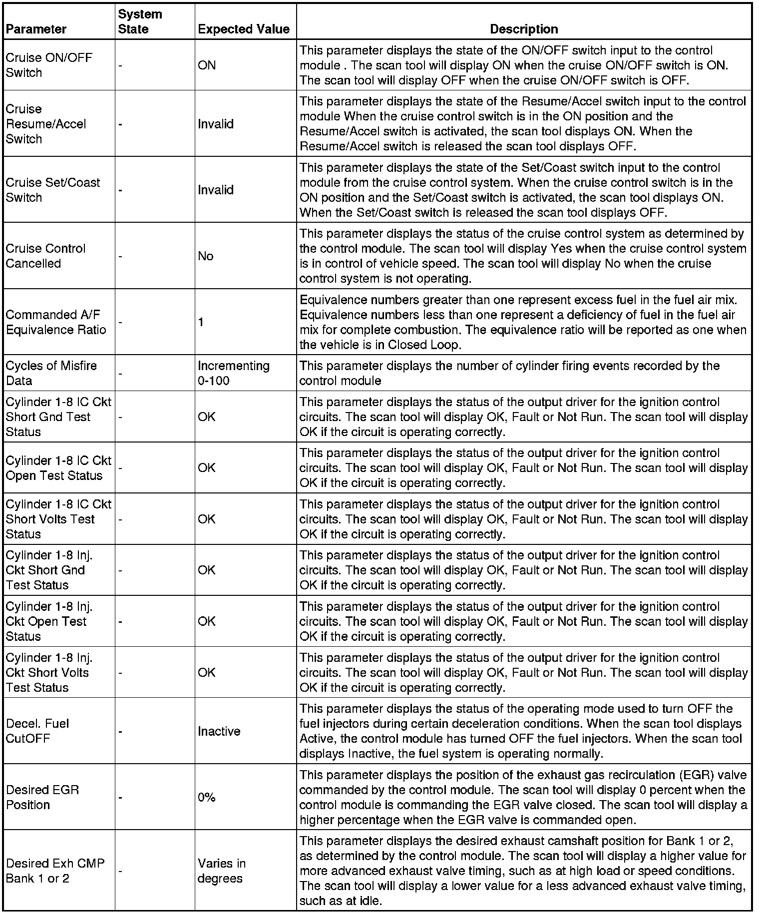 The Engine Control Module Scan Tool Data List contains all engine-related parameters that are available on the scan tool. The list is arranged in alphabetical order. A given parameter may appear in any one of the data lists, and in some cases may appear more than once, or in more than one data list in order to group certain related parameters together.