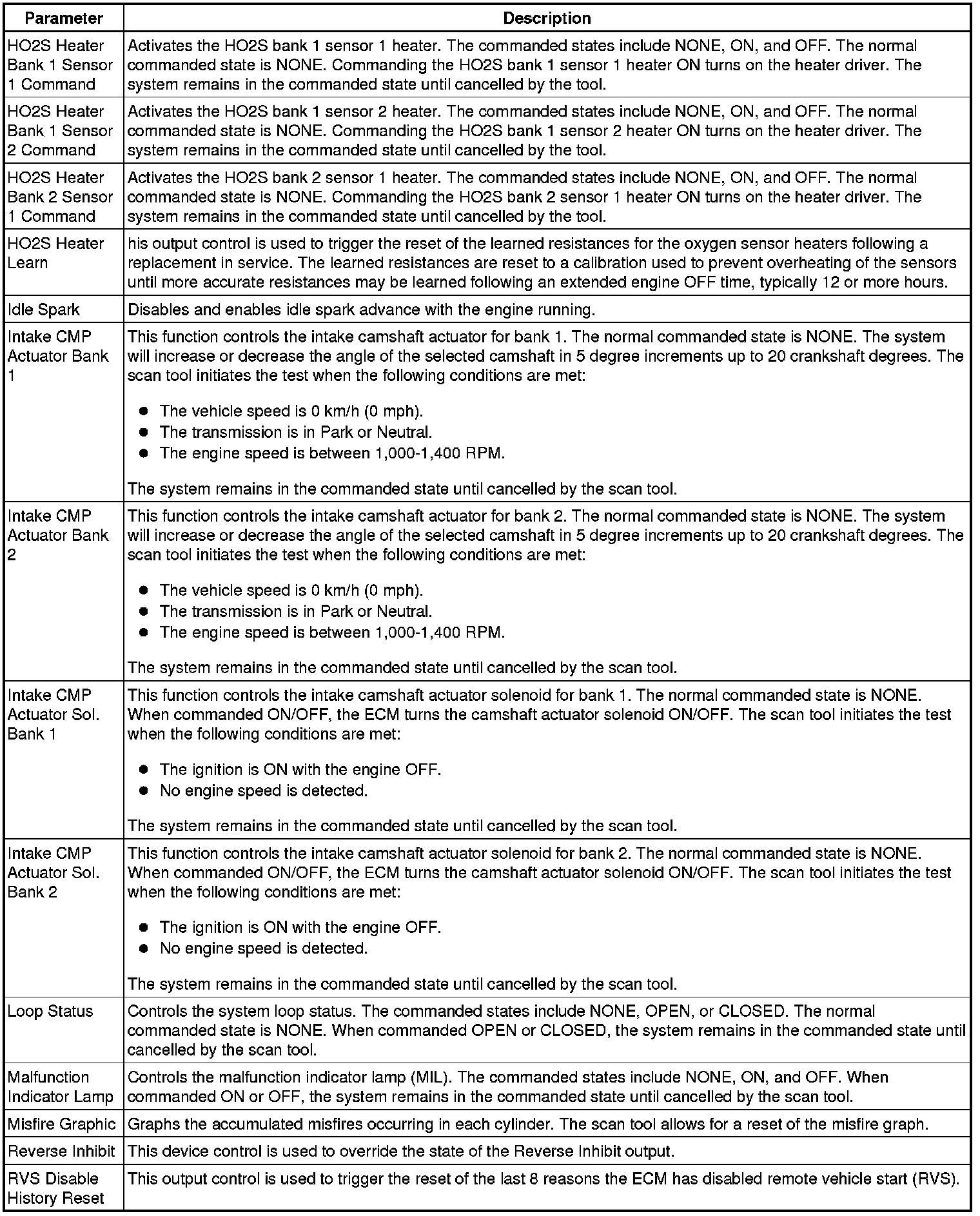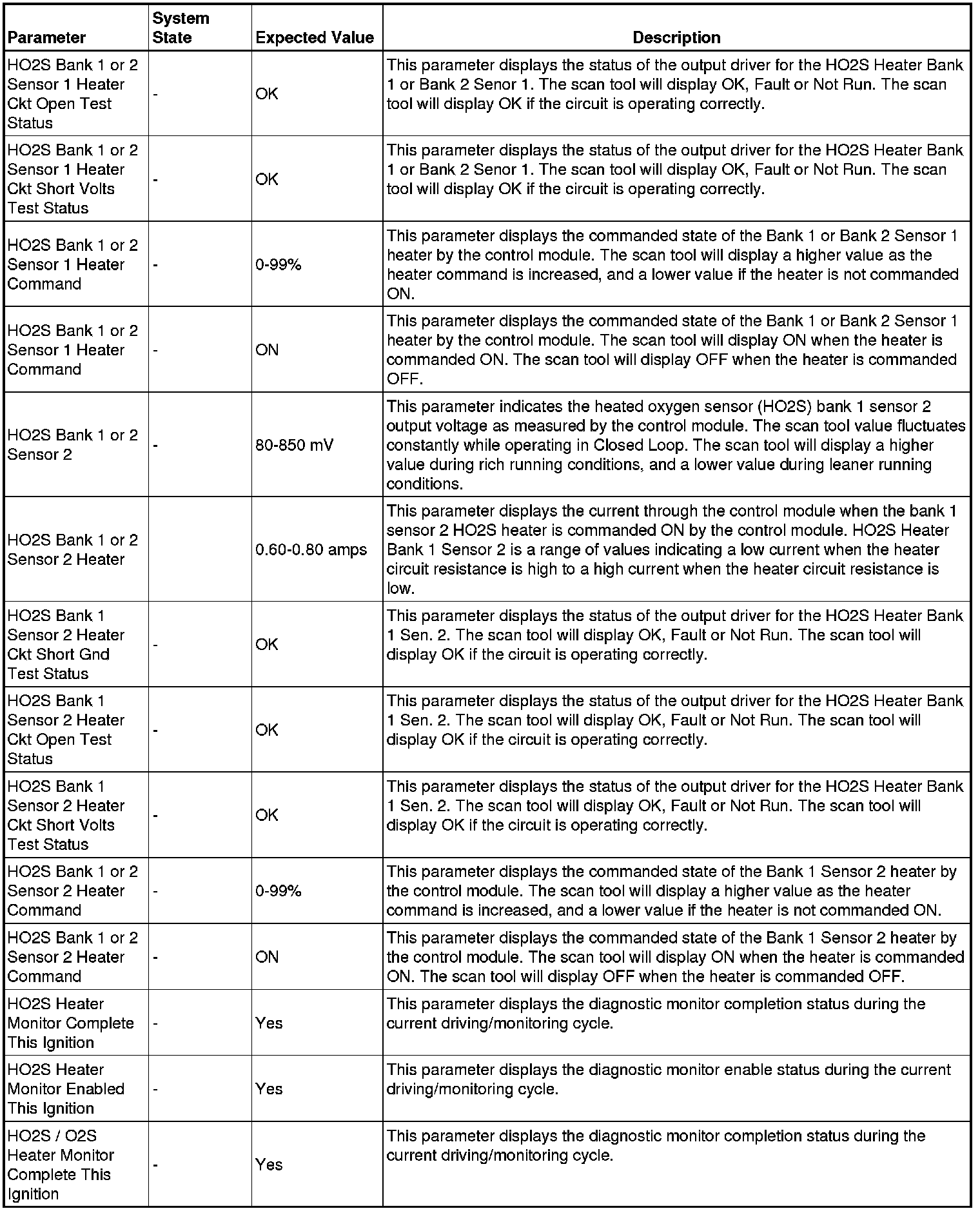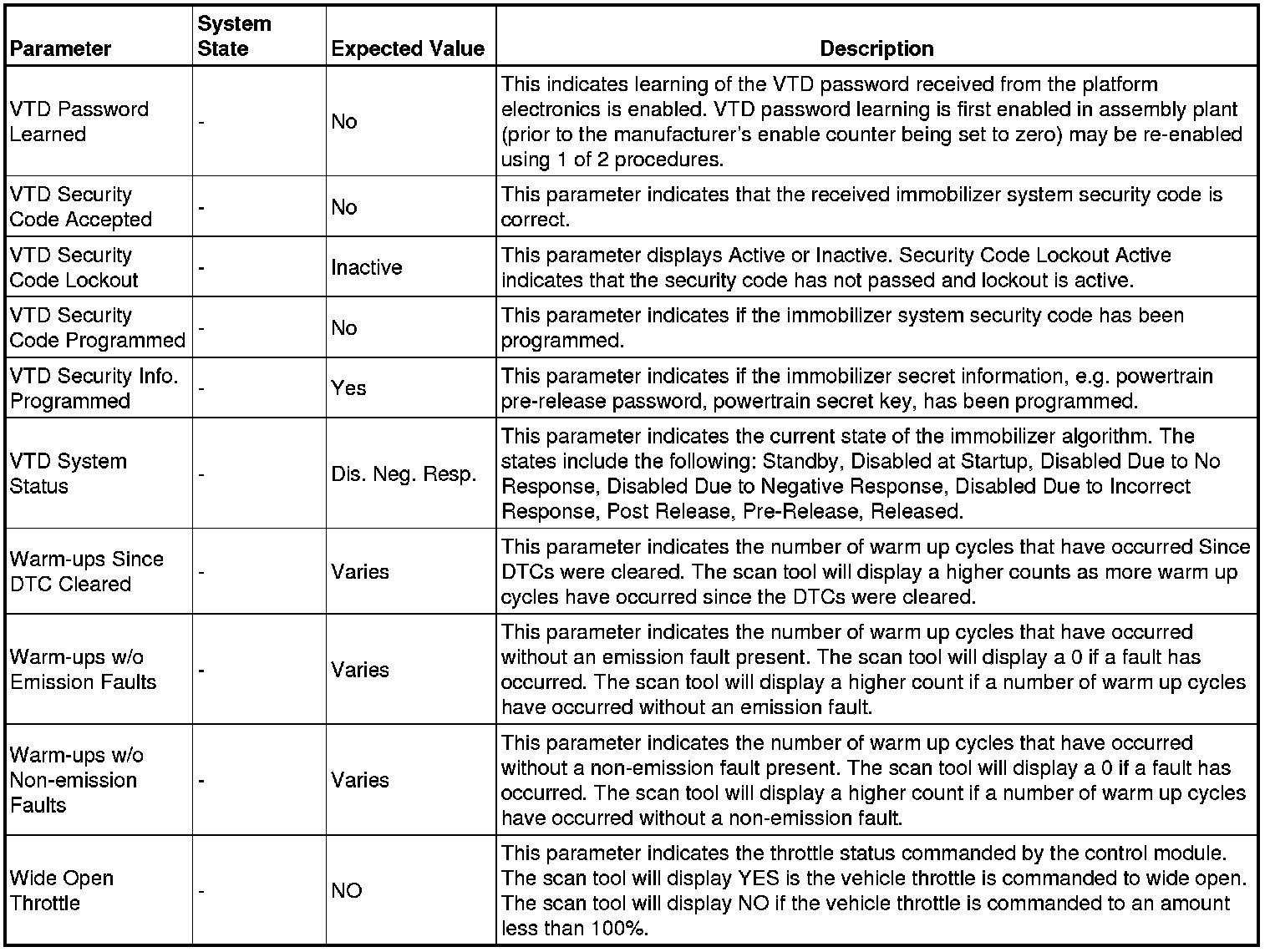 Only the parameters listed below are referenced in this service manual for use in diagnosis.