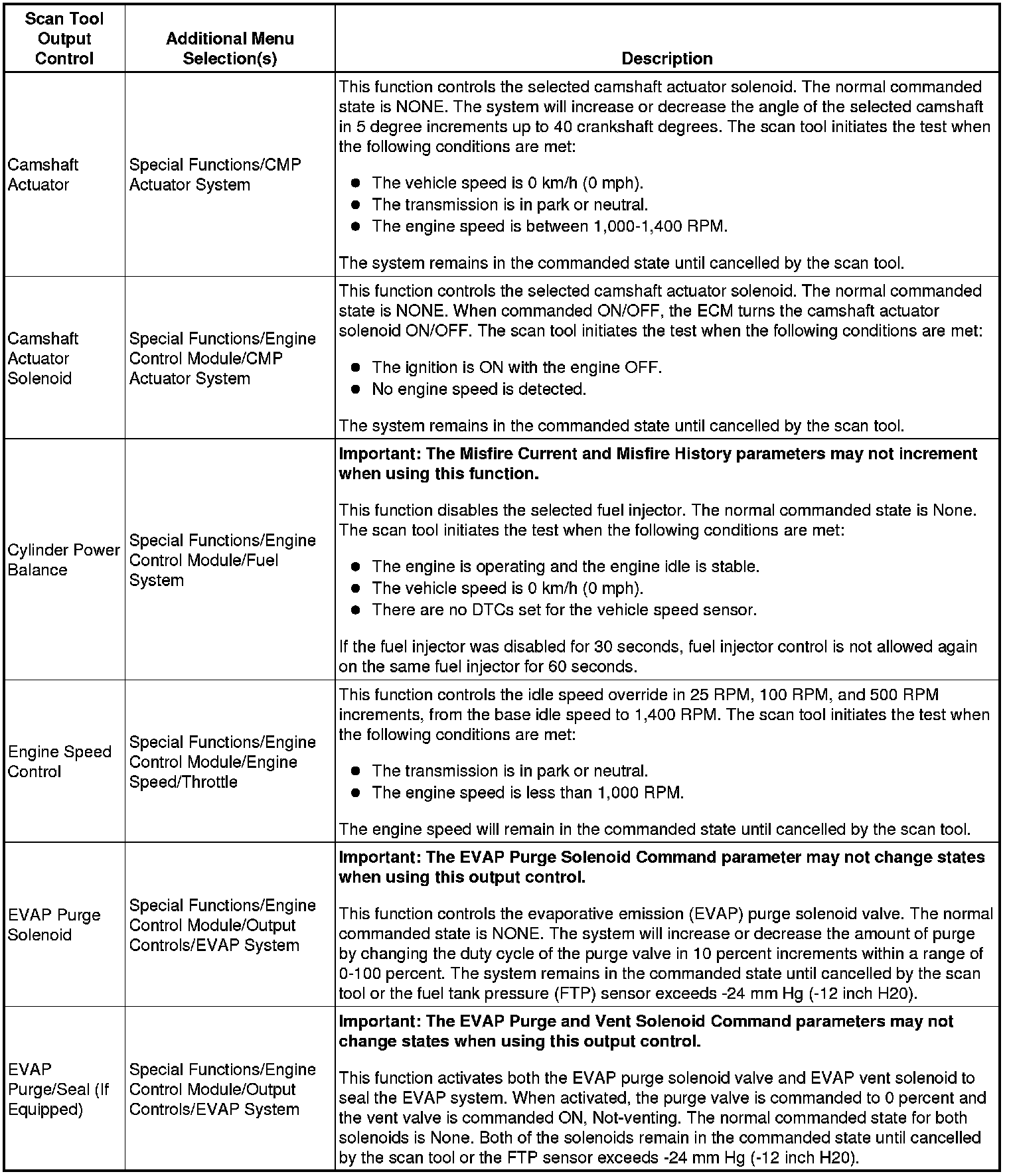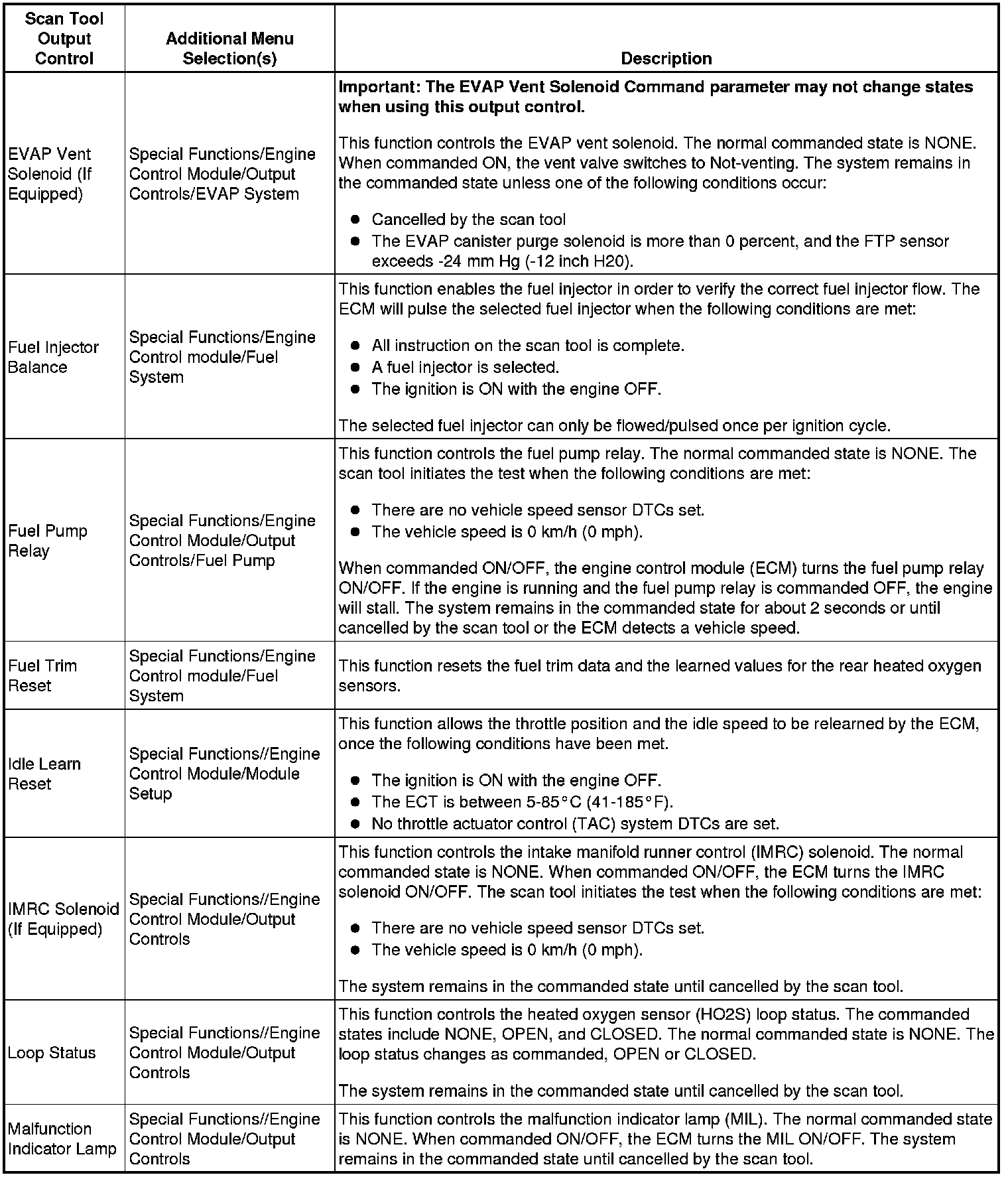 Scan Tool Output Controls