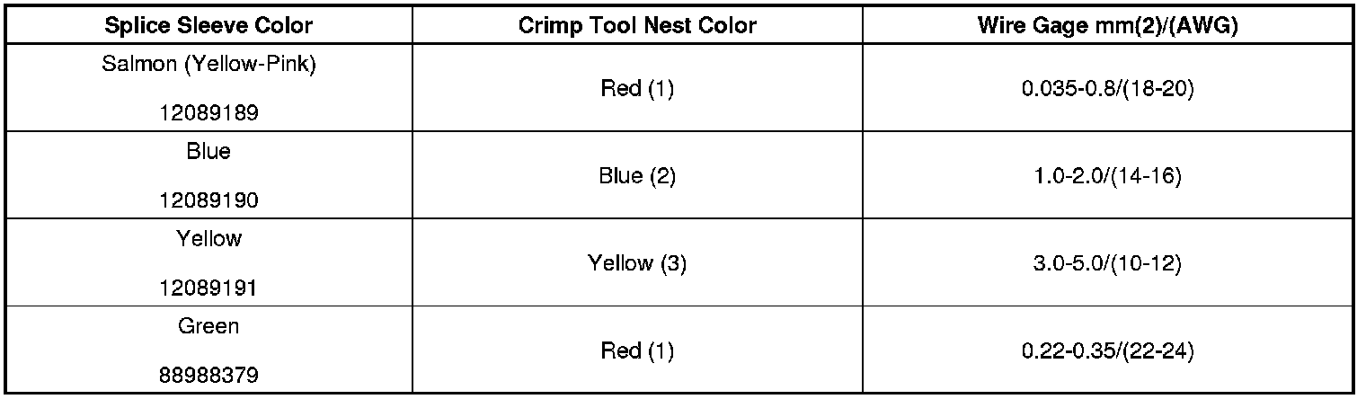 4. Select the proper DuraSeal splice sleeve according to the wire size. Refer to the above table at the beginning of the repair procedure for the color coding of the DuraSeal splice sleeves and the crimp tool nests.