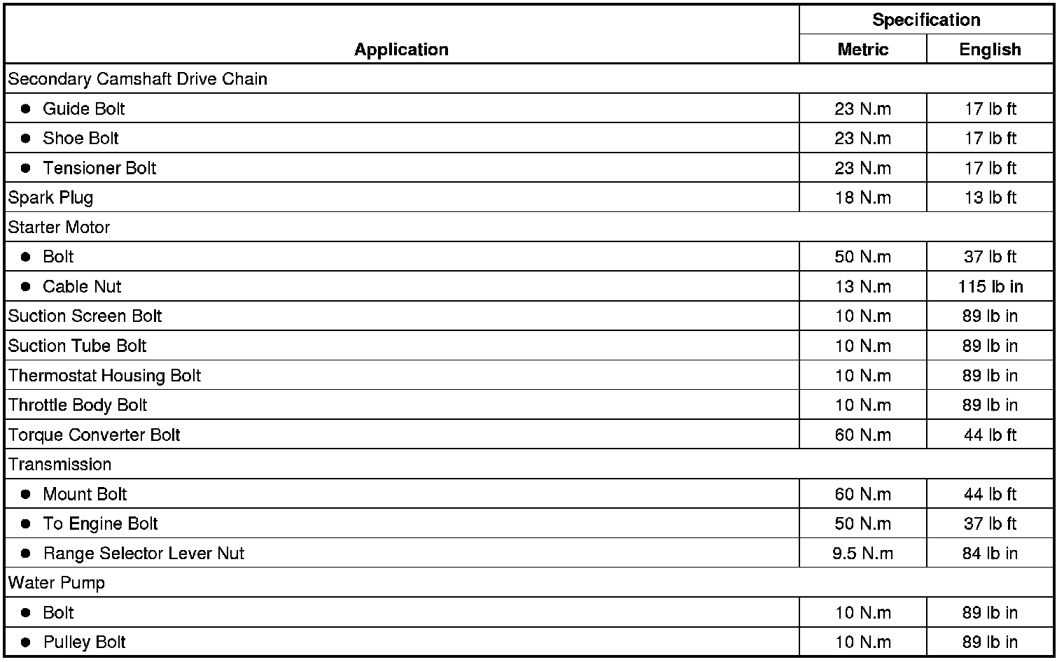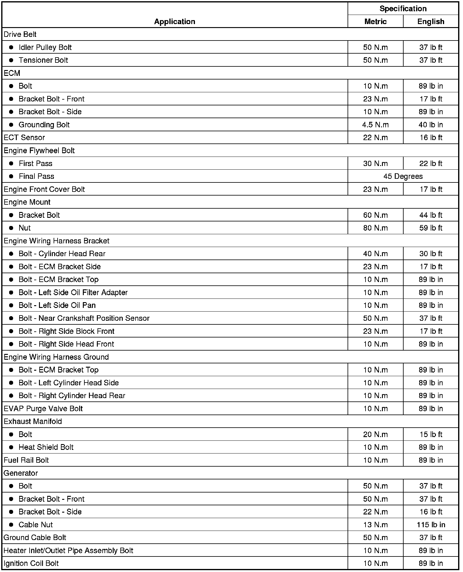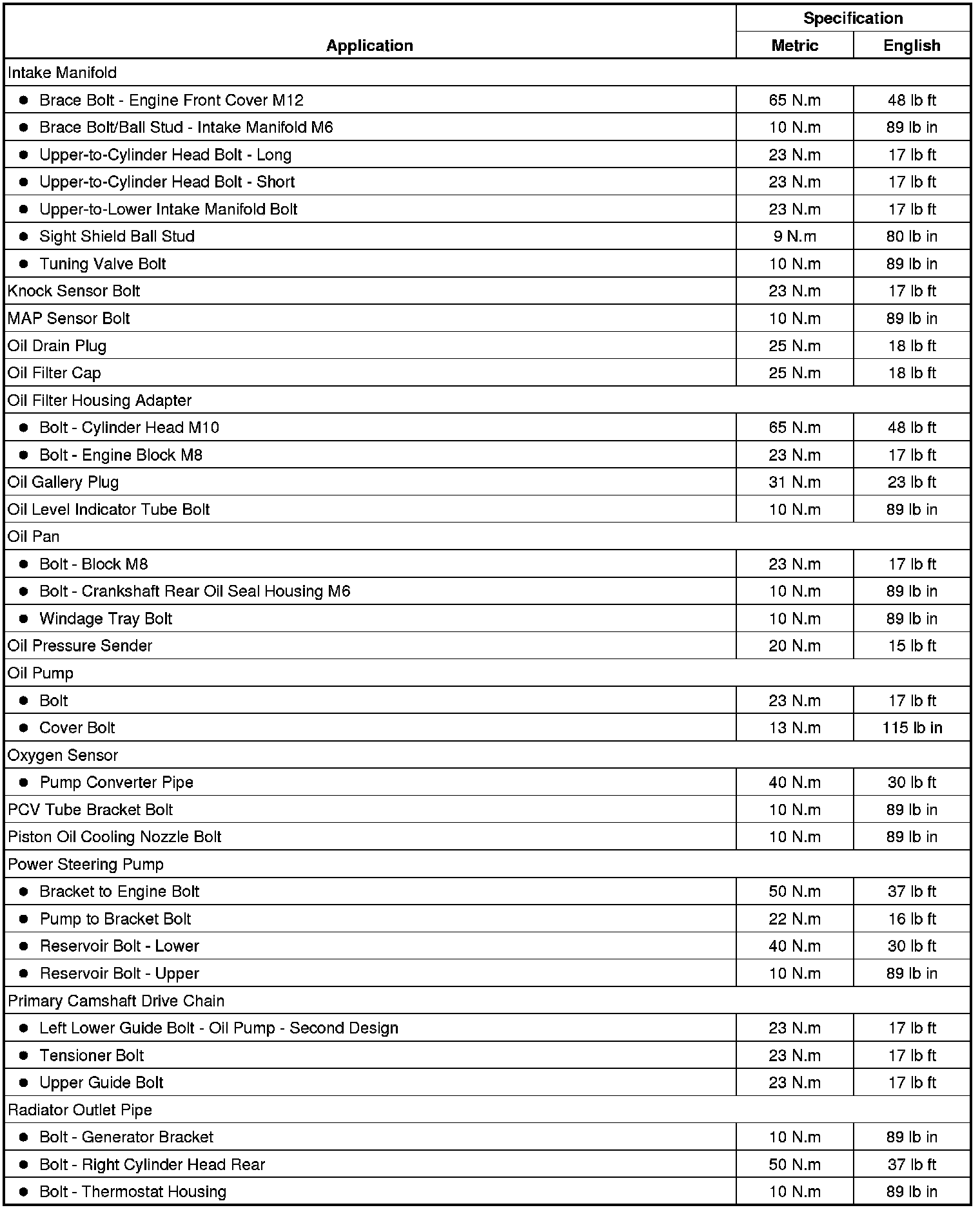 Fastener Tightening Specifications