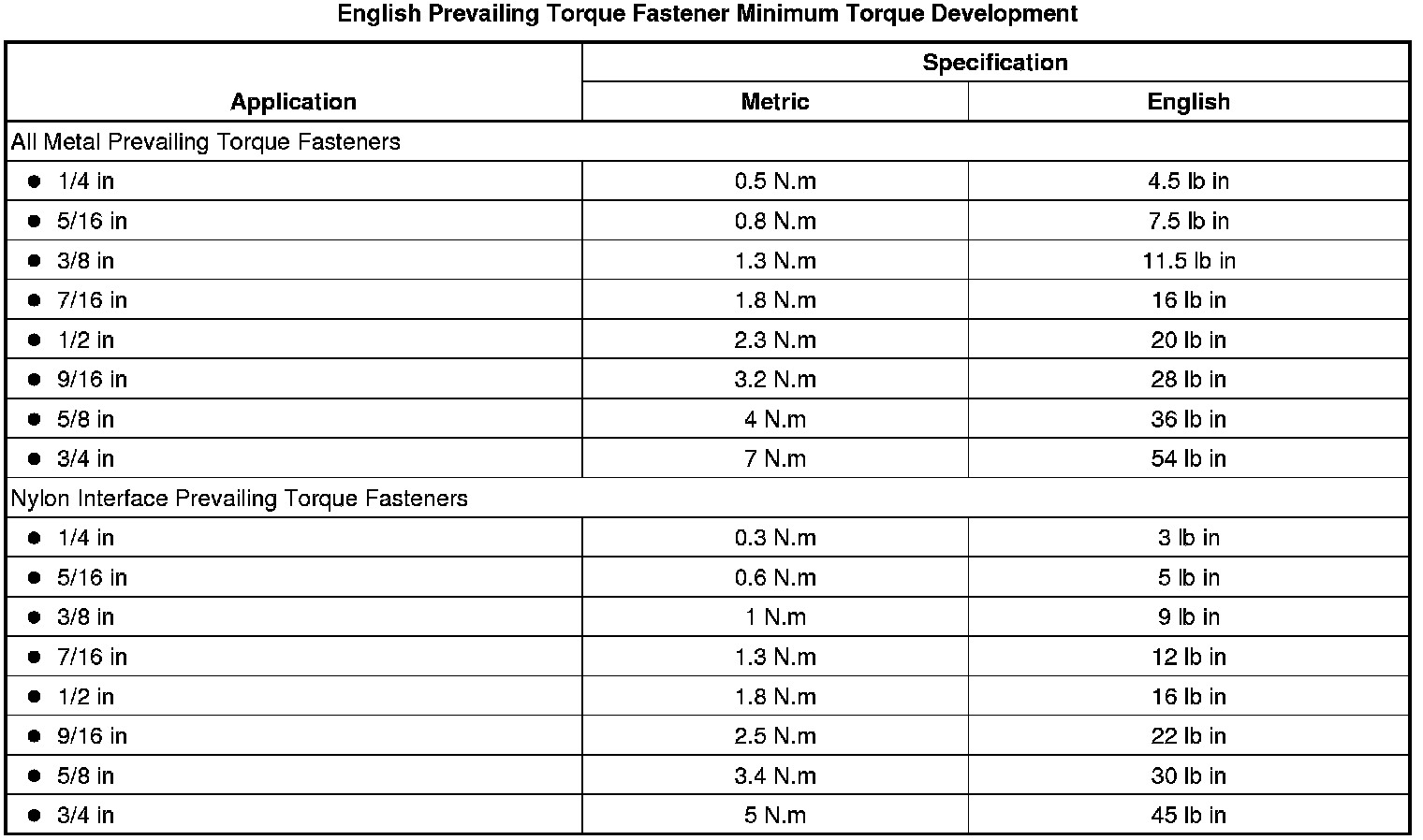 This vehicle provides fastener dimensions using the metric system. Most metric fasteners are approximate in diameter to equivalent English fasteners. Make replacements using fasteners of the same nominal diameter, thread pitch, and strength.