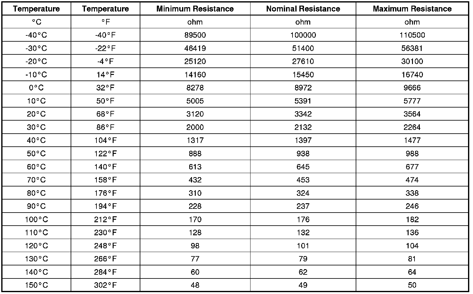 Transmission Fluid Temperature Sensor Specifications