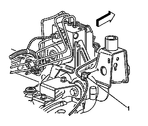 9. Loosen the brake line bracket nut (1).