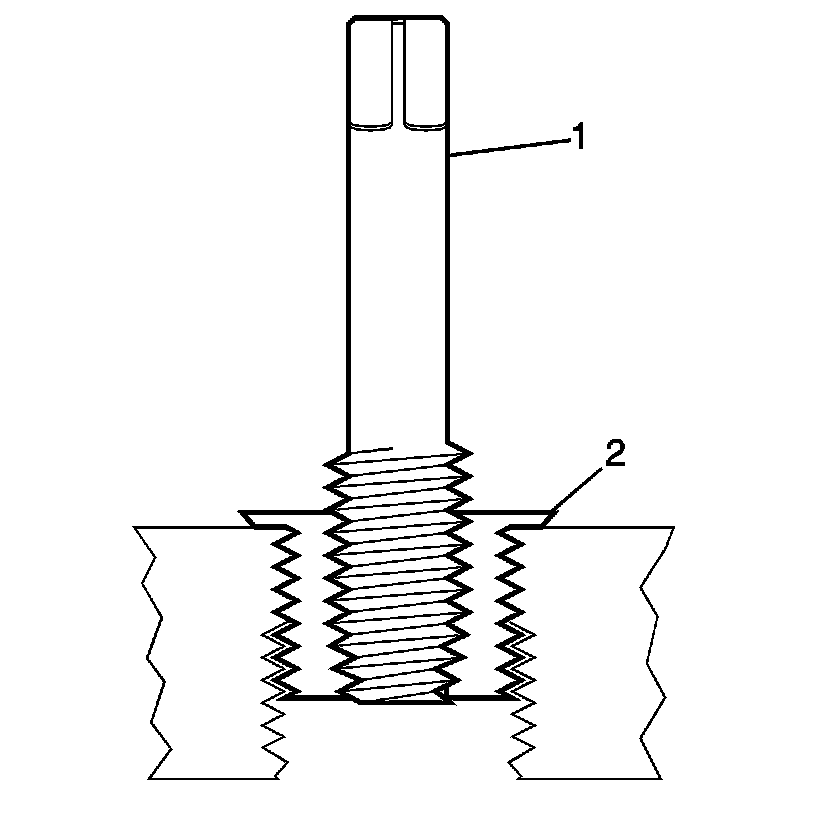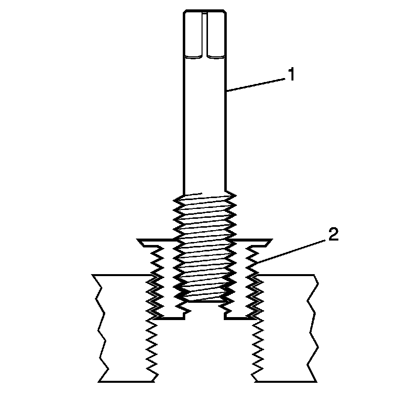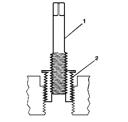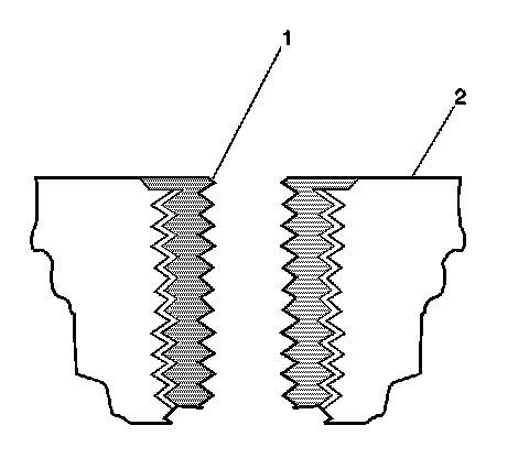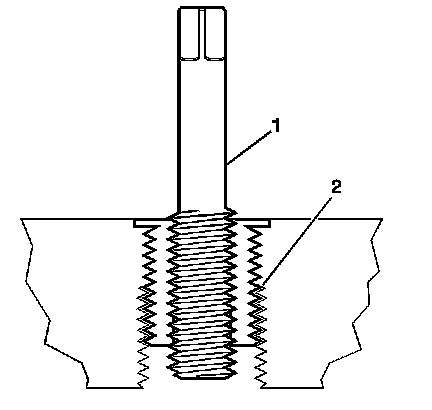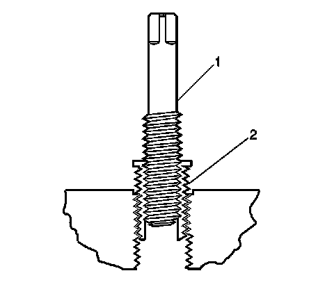 11. Apply threadlock sealant GM P/N 12345493, (Canadian P/N 10953488), J 42385-109, LOCTITE 277(R) or equivalent (1) to the insert OD threads (2).
