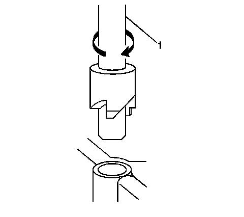 13. Continue to rotate the driver installation tool (1) through the insert (2).