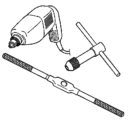 The drill bit and counter bore tool from the tool kit J 42385-2000 and J 42385-2030 is designed for use with either a suitable tap wrench or drill motor. Limited access and larger hole repair may process better using a tap wrench. An extension from kit J 43965 may also be necessary to drive the thread repair tooling dependent on access to the hole being repaired. Use only a tap wrench when tapping the hole and during installation of the insert.