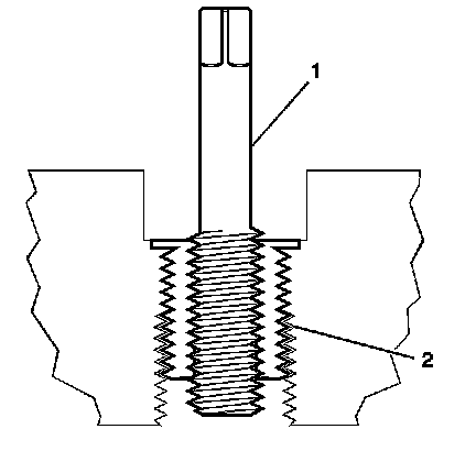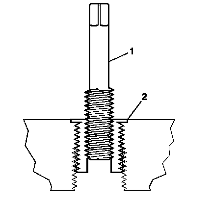 14. Inspect the insert (1) for proper installation (2) into the tapped hole.