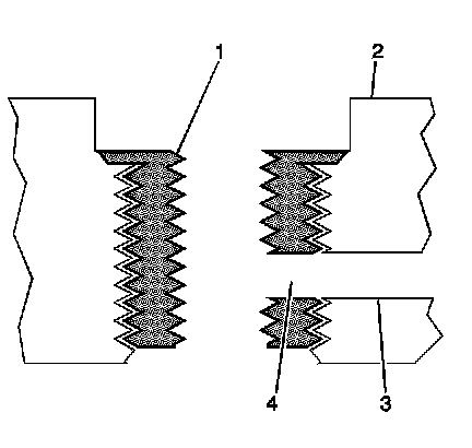 4. Tap the drilled hole until the threads at the top of the tap (2) are down to the surface of the base material.