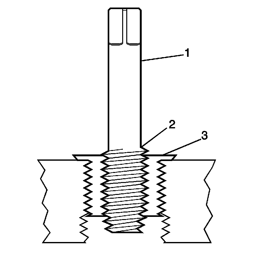 13. Continue to rotate the driver installation tool (1) until the top of the threaded section (2) is level with the top of the insert (3).