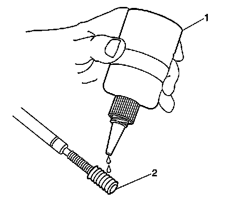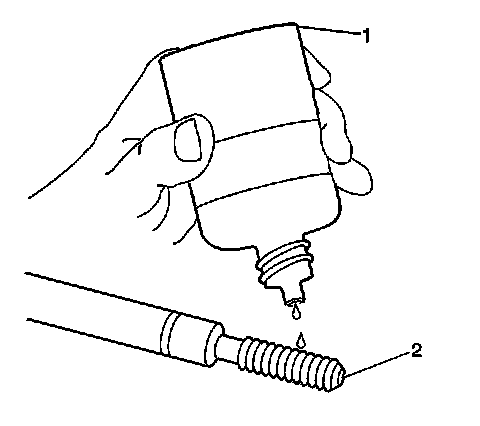 15. Apply threadlock sealant GM P/N 12345493, (Canadian P/N 10953488), J 42385-109, LOCTITE 277(R) or equivalent (1) to the insert OD threads (2).