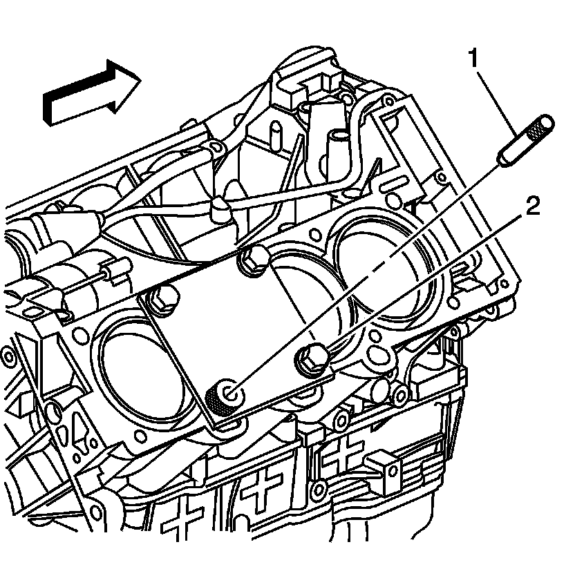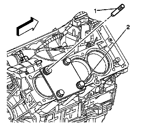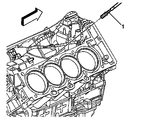 5. Remove the alignment pin (1) from the cylinder head bolt hole.