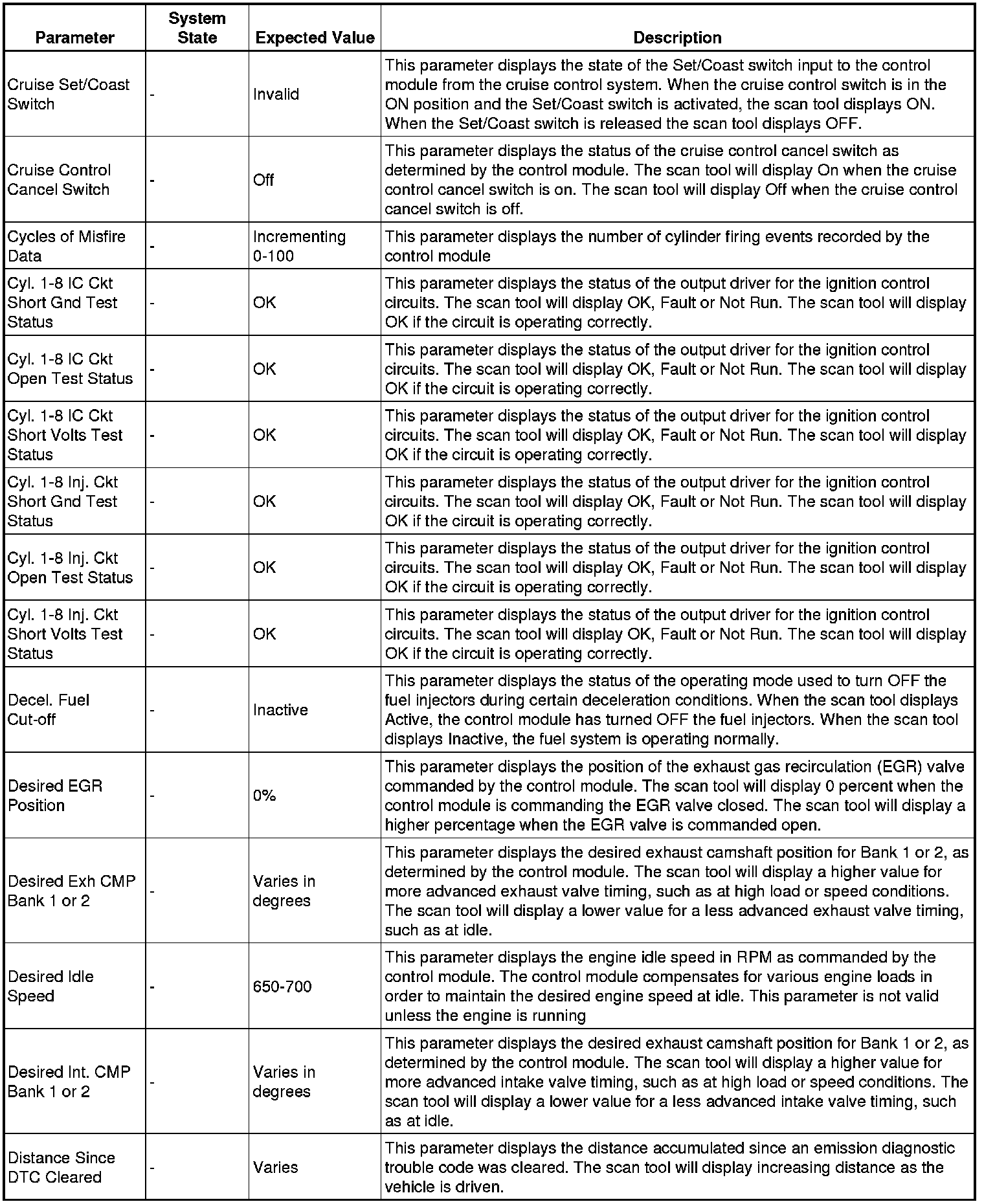 The Engine Control Module Scan Tool Data List contains all engine-related parameters that are available on the scan tool. The list is arranged in alphabetical order. A given parameter may appear in any one of the data lists, and in some cases may appear more than once, or in more than one data list in order to group certain related parameters together.