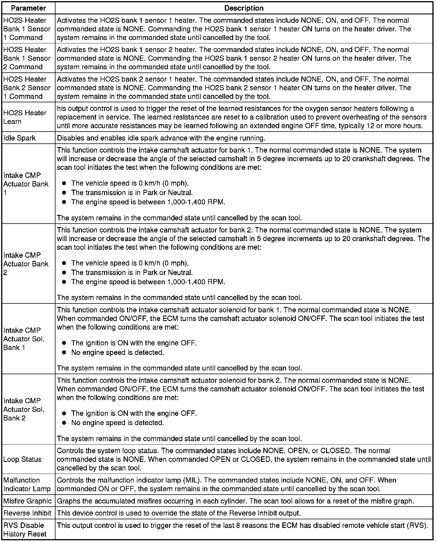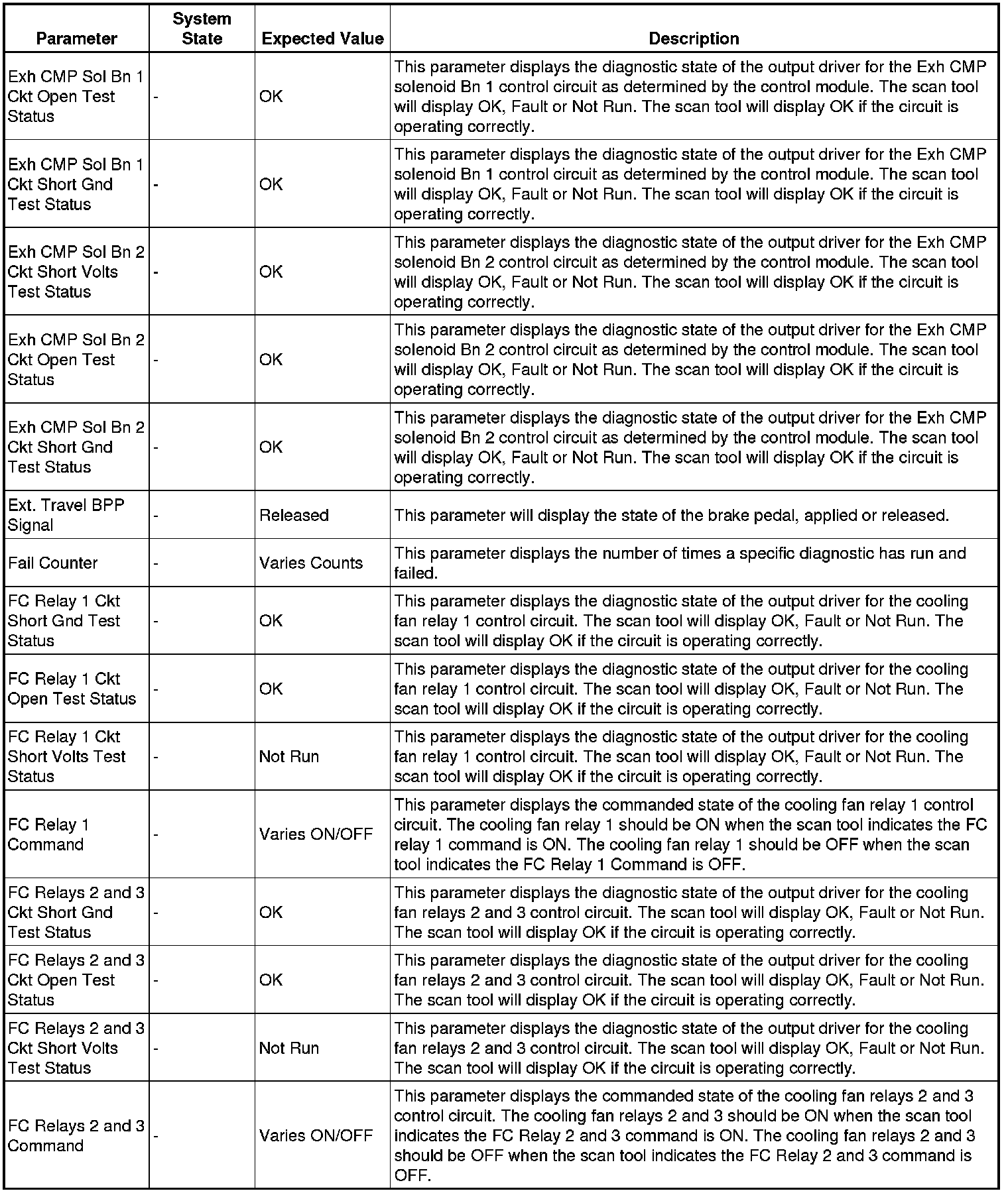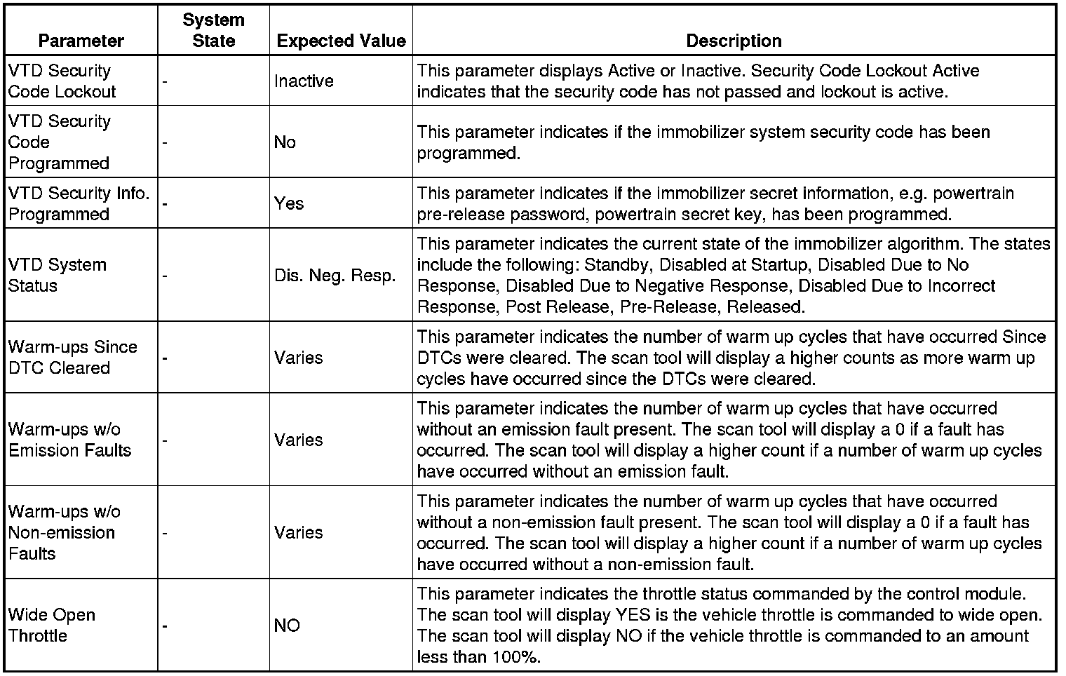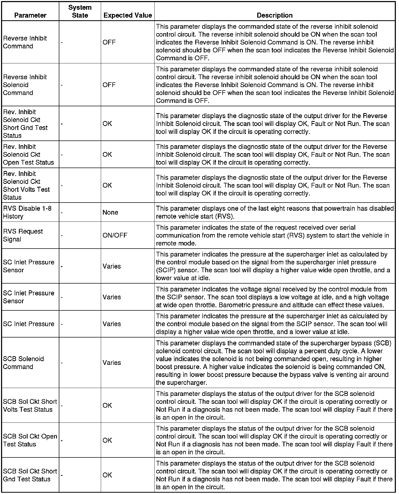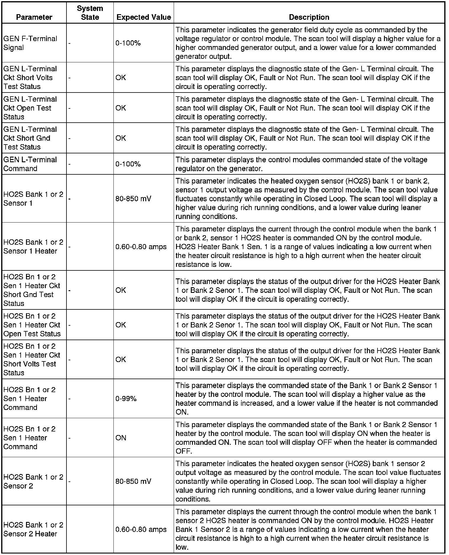 Only the parameters listed below are referenced in this service manual for use in diagnosis.