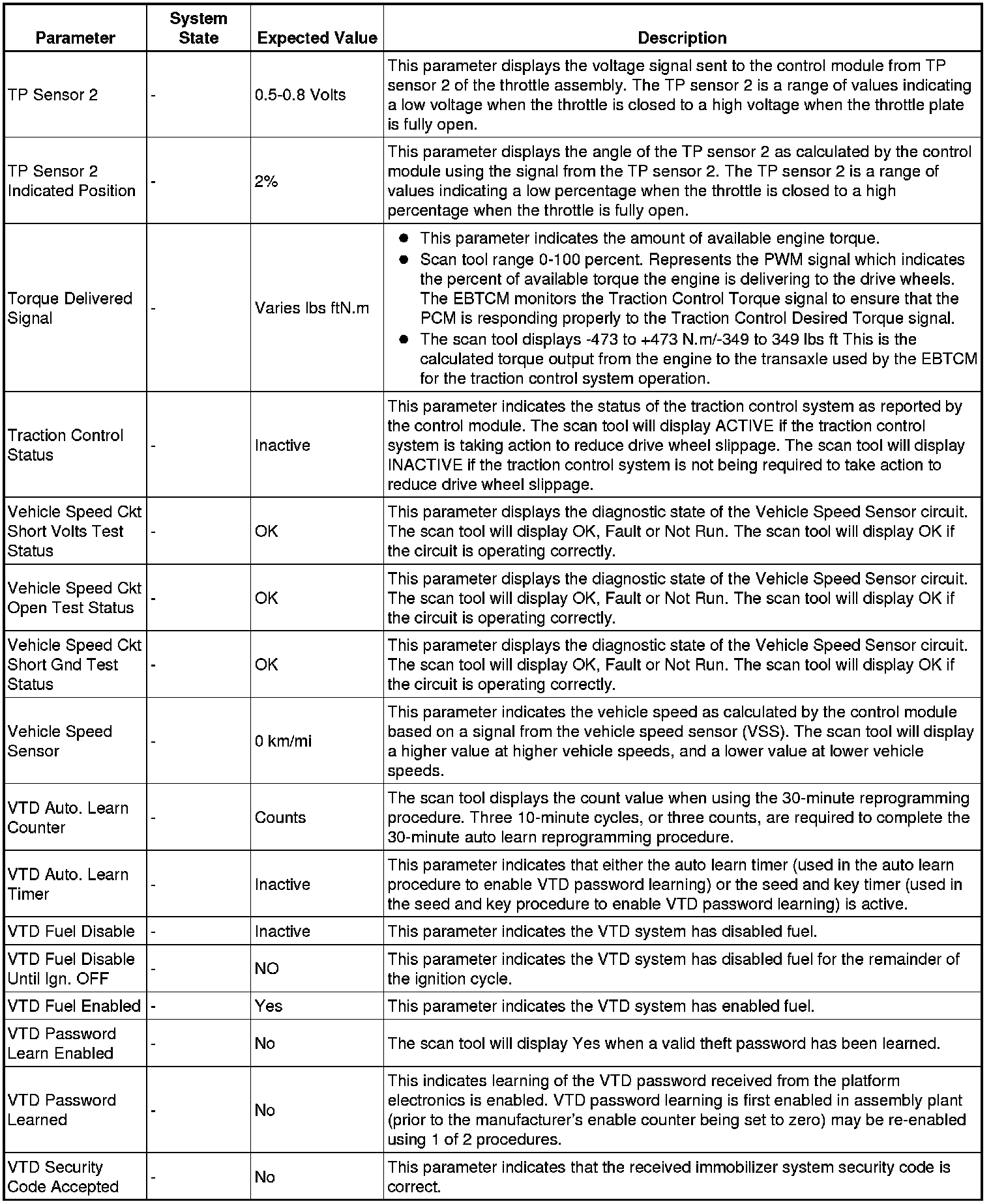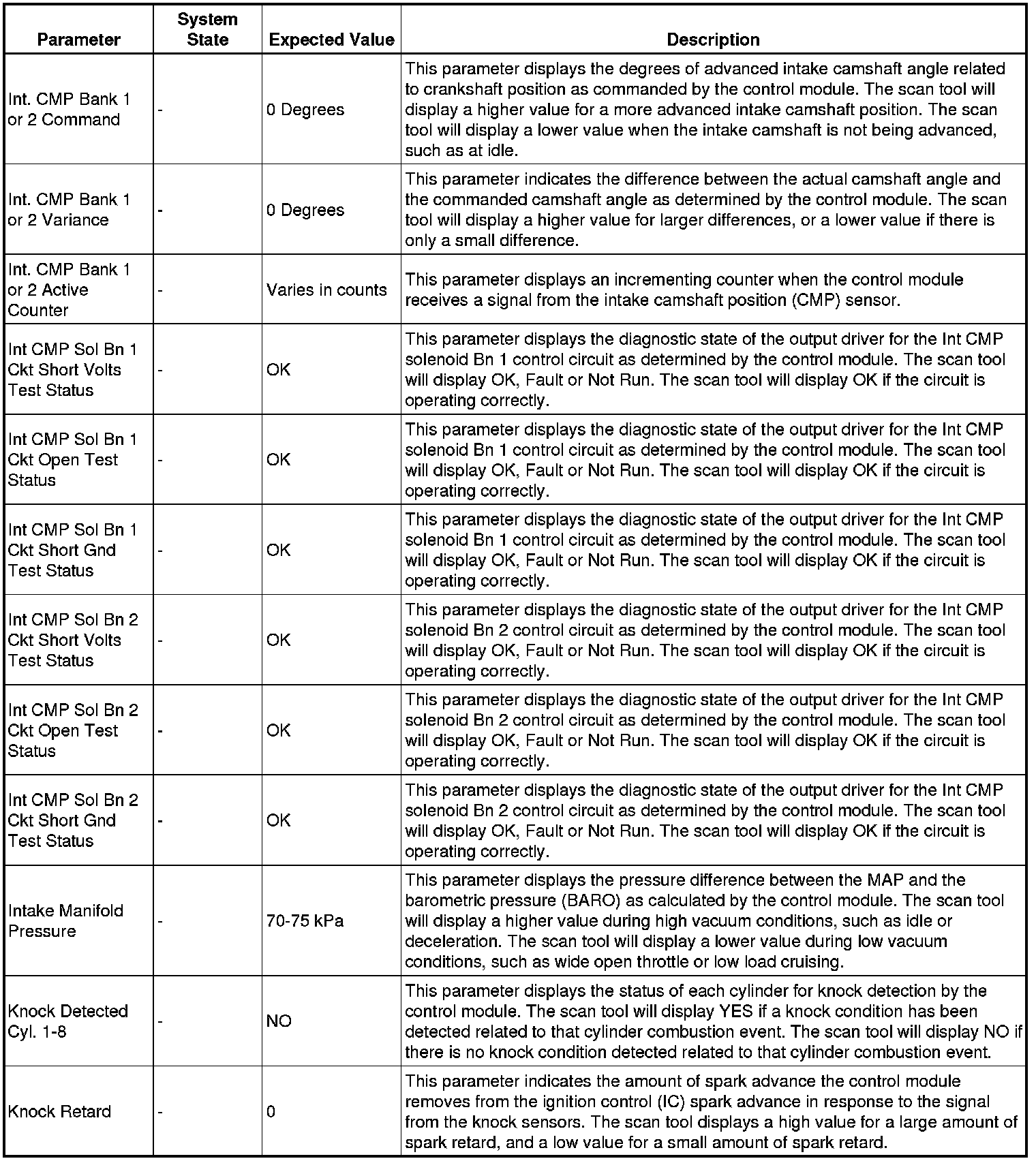 The scan tool values from a properly running engine may be used for comparison with the engine you are diagnosing. The engine scan tool data list represents values that would be seen on a normally running engine.