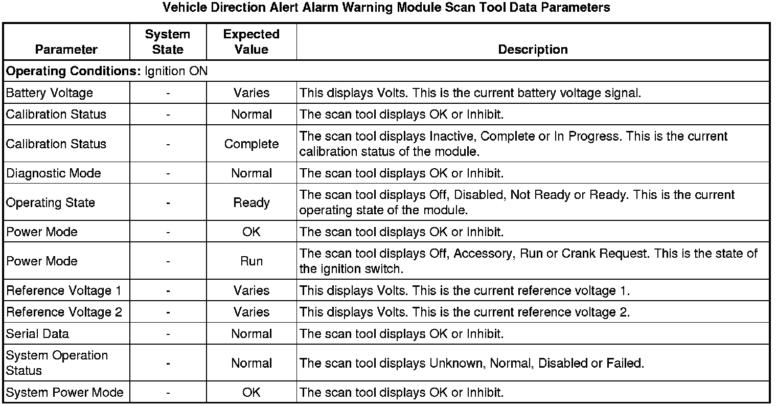 Vehicle Direction Alert Alarm Warning Module Scan Tool Information