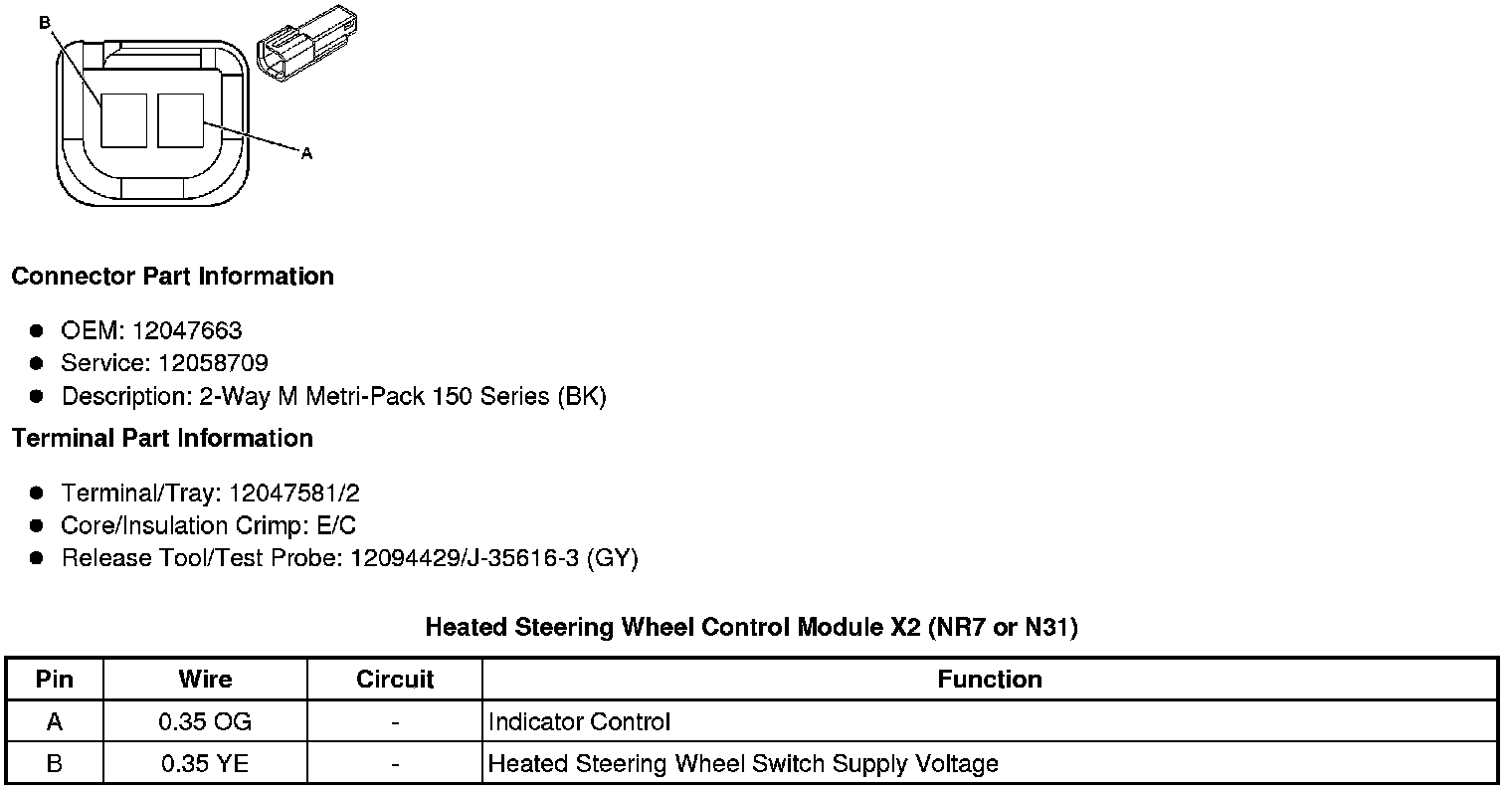 Heated Steering Wheel Control Module X1 (NR7 or N31)