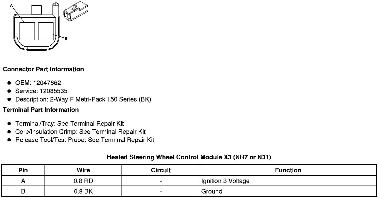 Heated Steering Wheel Control Module X3 (NR7 or N31)