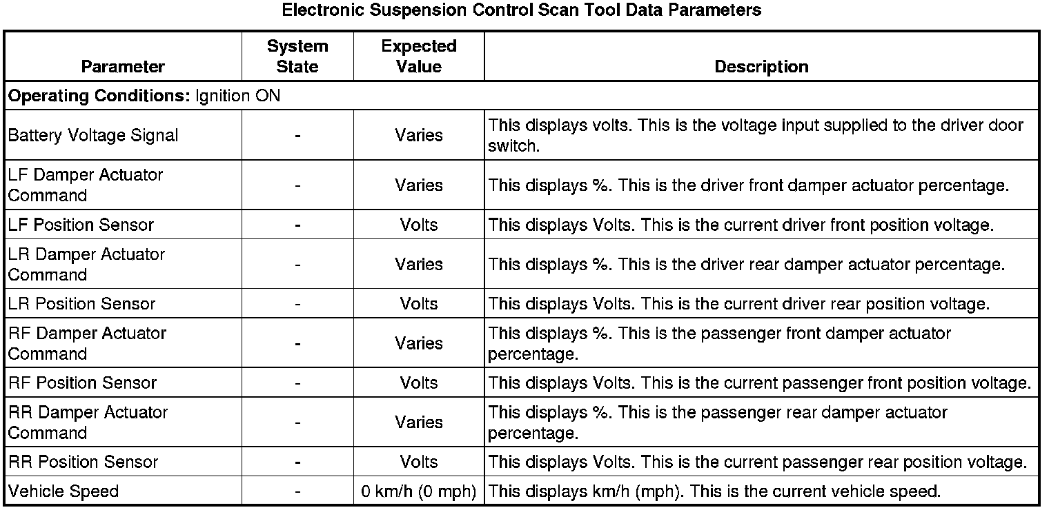 Electronic Suspension Control Module Scan Tool Information