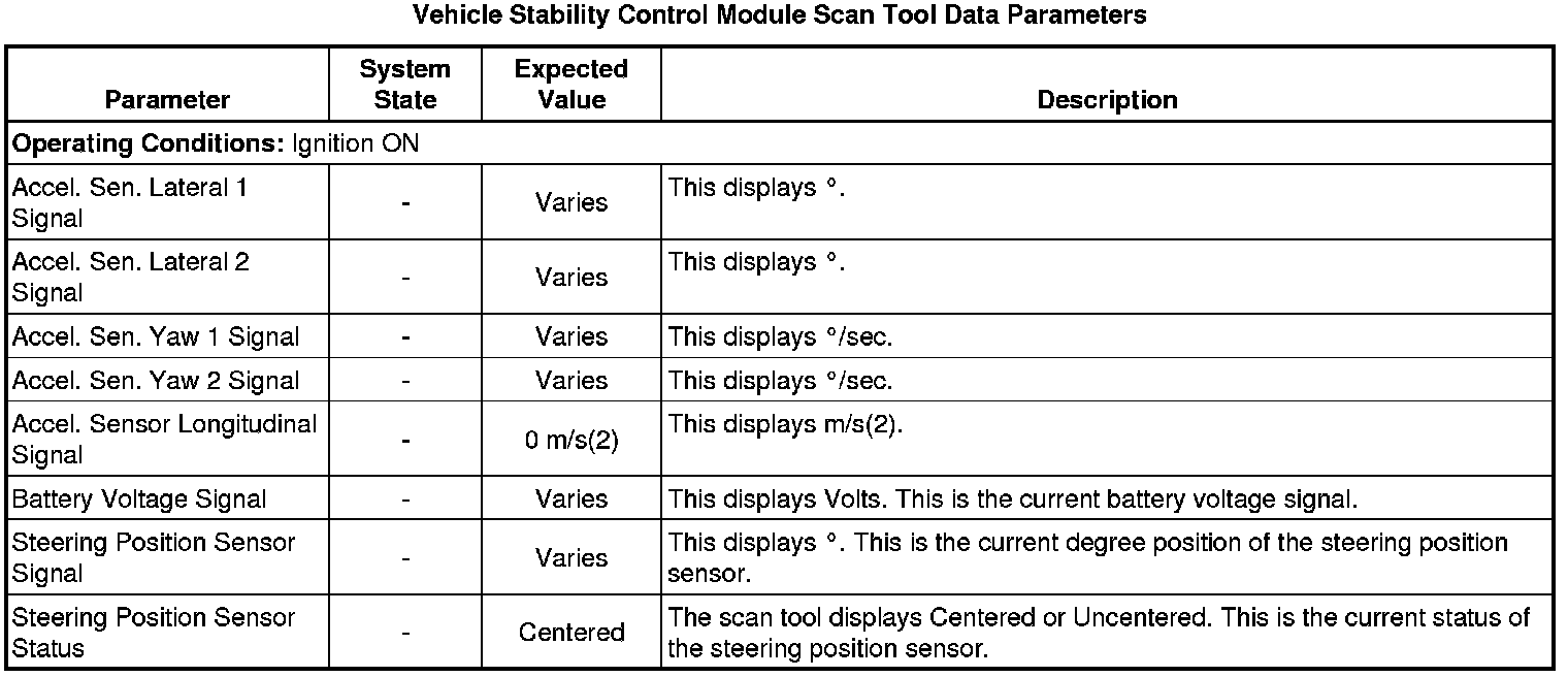 Vehicle Stability Control Module Scan Tool Information