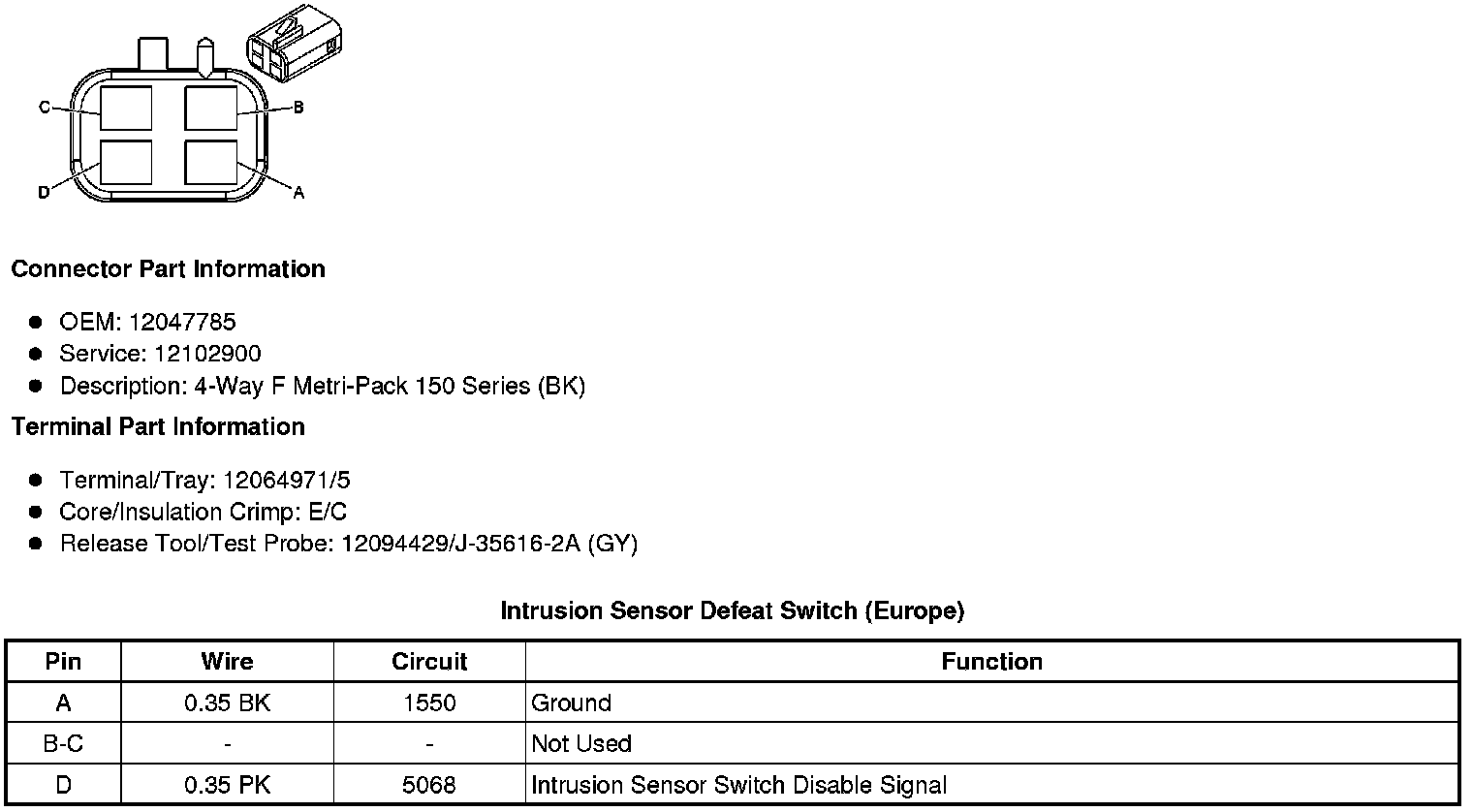 Intrusion Sensor Defeat Switch (Europe)