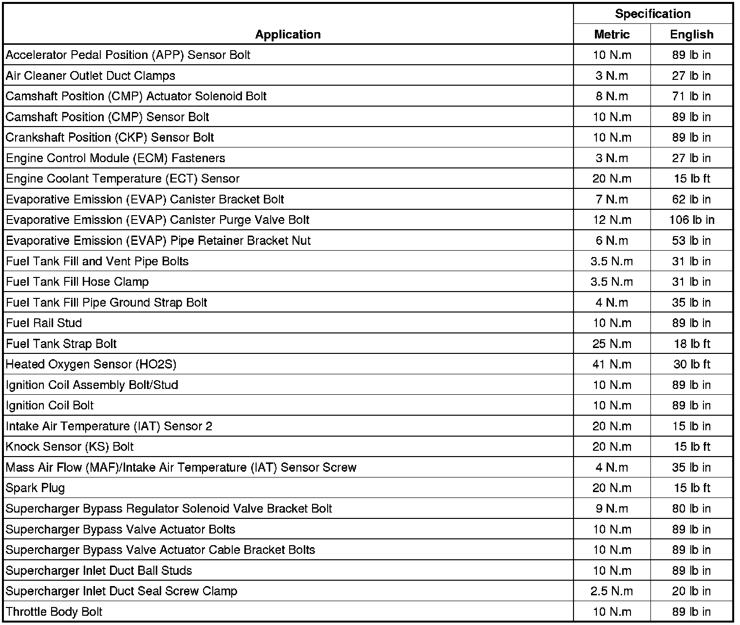 Fastener Tightening Specifications