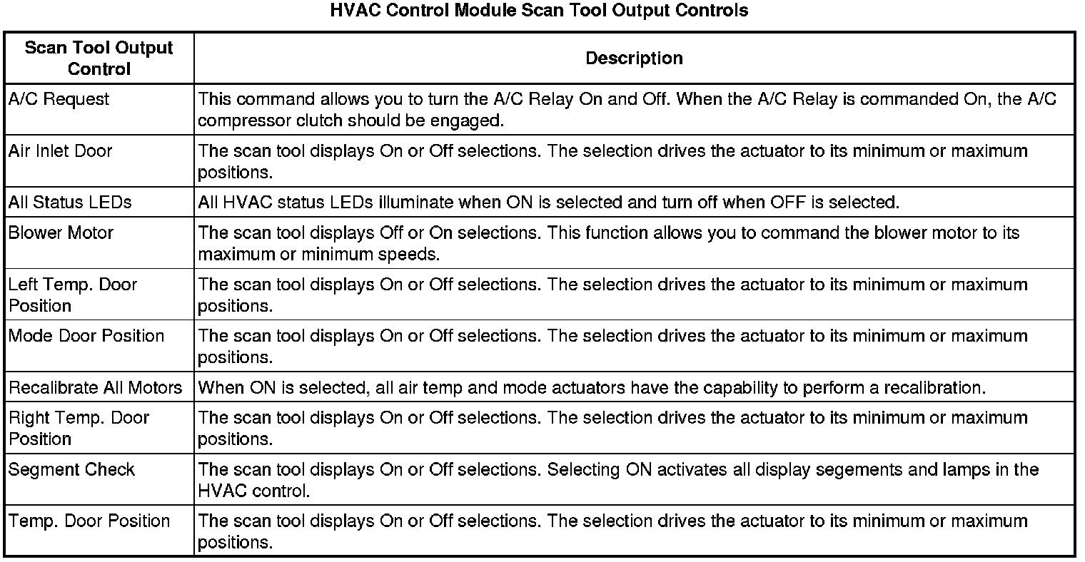 Heating, Ventilation and Air Conditioning Control Module Scan Tool Information