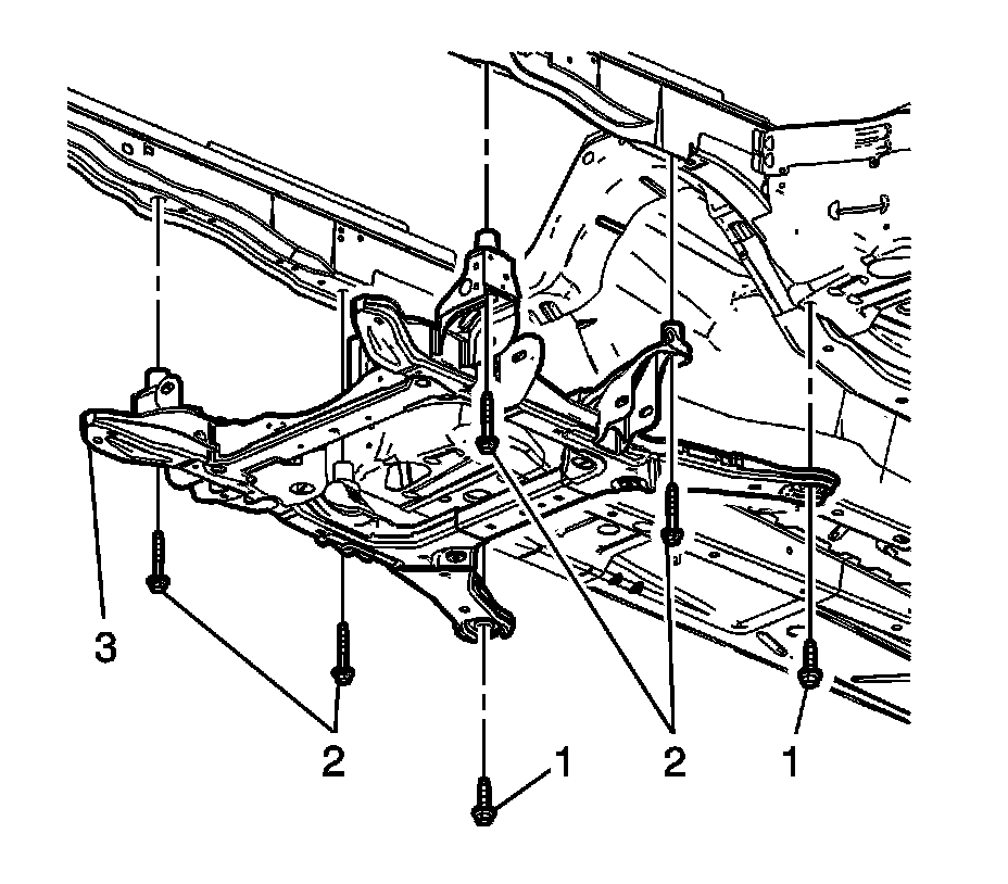 13. Remove the power steering gear mounting bolts. Refer to Steering Gear Replacement (Left Hand Drive and All Wheel Drive) (Service and Repair)Steering Gear Replacement (Left Hand Drive and Rear Wheel Drive) (Service and Repair)Steering Gear Replacement (Right Hand Drive and Rear Wheel Drive) (Service and Repair).