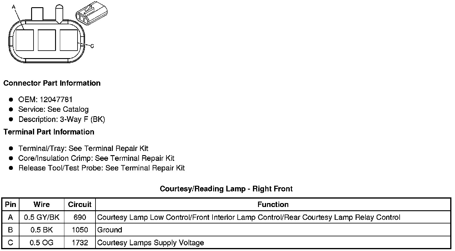 Courtesy/Reading Lamp - Right Rear