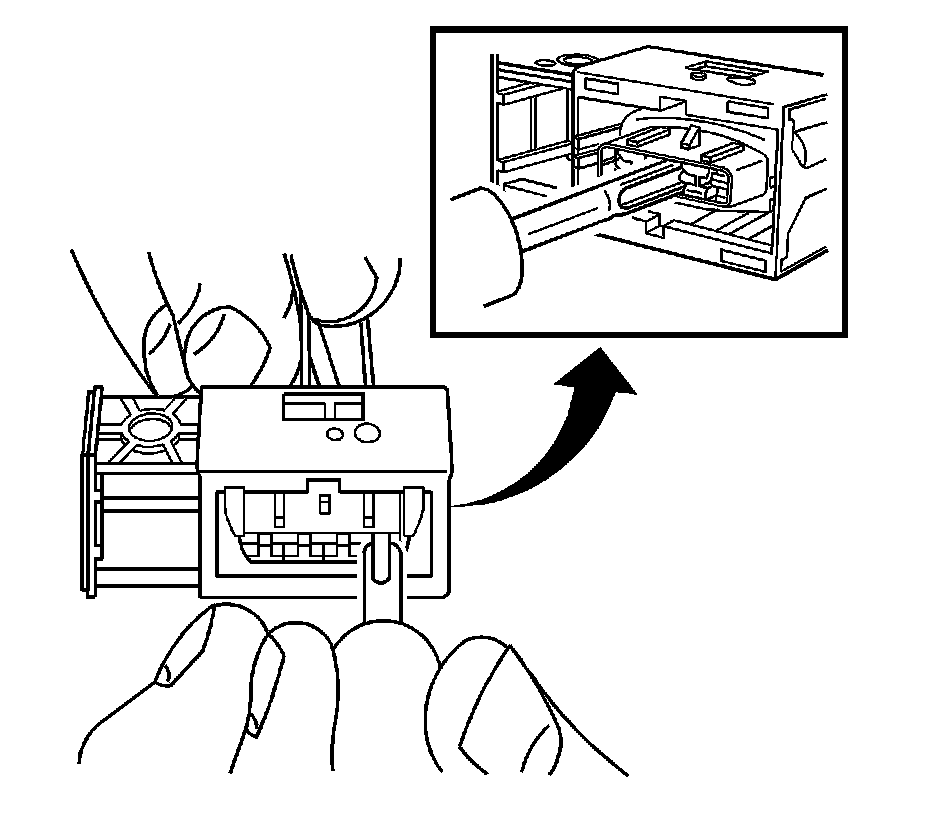 6. Carefully pull the terminal out of the connector. Always remember never use force when pulling a terminal out of a connector. If the terminal is difficult to remove, repeat the entire procedure.