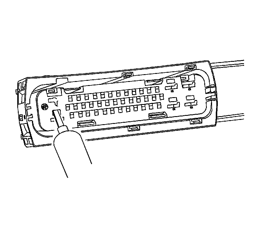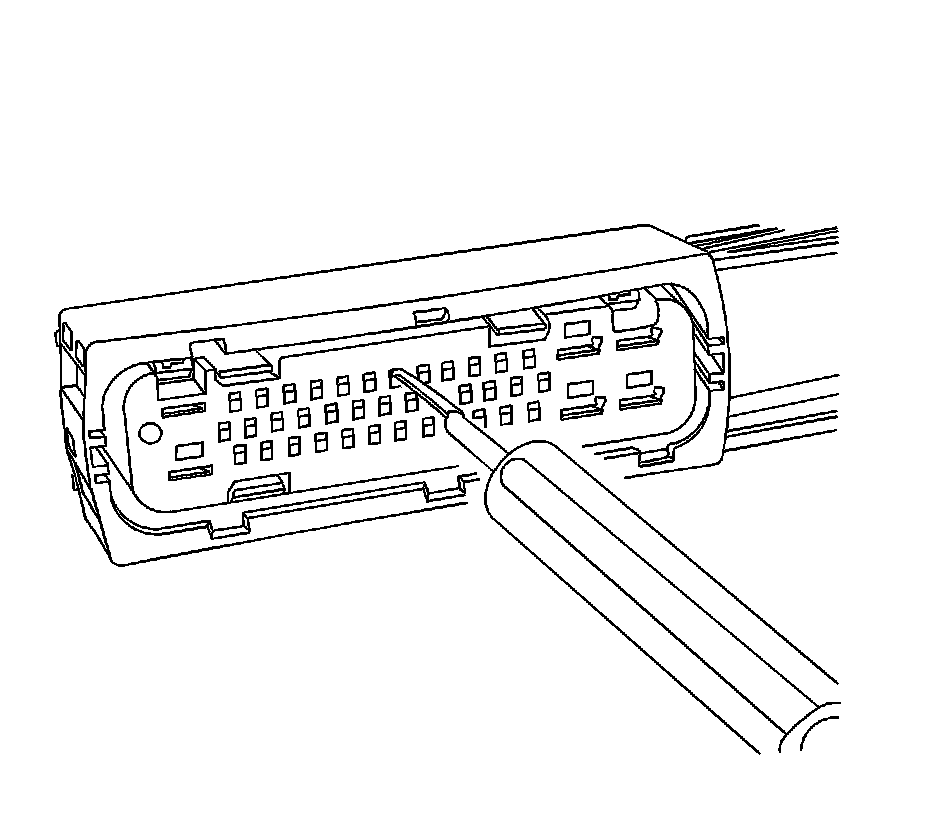 6. For the larger terminals insert the J 38125-13A tool to release the terminals by inserting the tool into the terminal release cavity. For the smaller terminals insert the J 38125-12A tool to release the terminals by inserting the tool into the terminal release cavity. See the release tool cross reference in the Reference Guide of the J-38125 to ensure that the correct release tool is used.